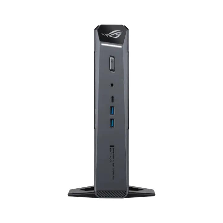 Mimo małych rozmiarów, tylny i przedni panel urządzenia imponują liczbą portów. ROG GR70 obsługuje do pięciu monitorów 4K jednocześnie, wykorzystując złącza HDMI 2.1 oraz DisplayPort 2.1. Na pokładzie znalazło się również miejsce dla: