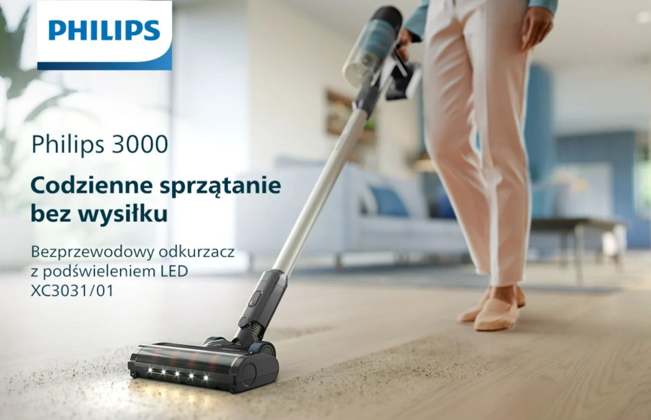 Odkurzacz bezprzewodowy PHILIPS 3000 XC3031/01 2024 PowerCyclone 8, LED, czarno-niebieski: 1199 zł -> 649 zł