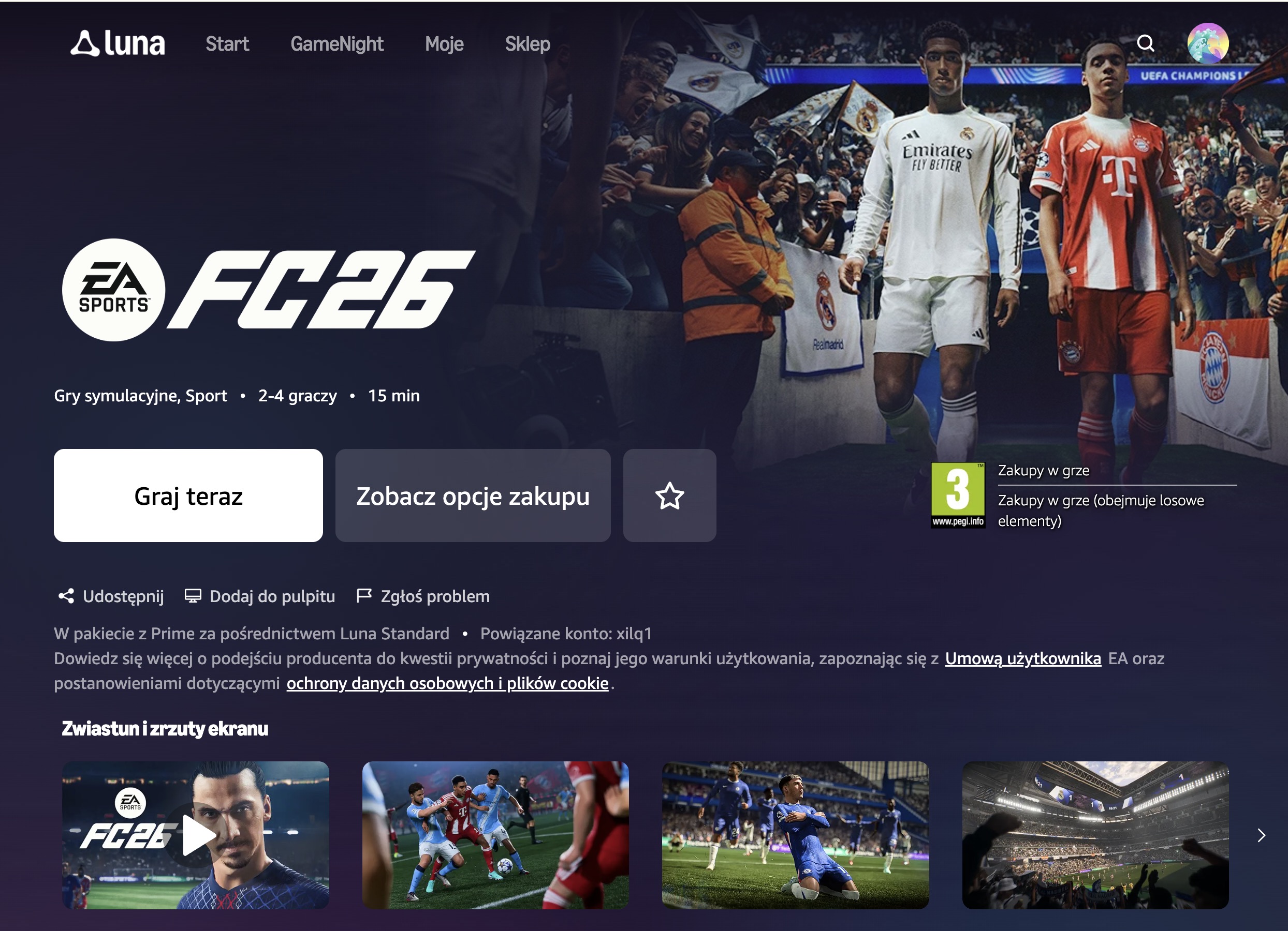 Oprócz tego gracz ma dyspozycji ponad 20 000 zawodników z najlepszych lig na świecie. Grając w EA FC 26 w usłudze Amazon Luna nie brakuje możliwości rozgrywki ze znajomymi online z innych platform w trybie Clubs.