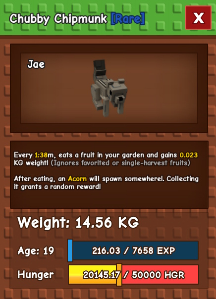Pulche -wiewiórkowy zwierzak ma pasywną cechę, która pozwala mu rosnąć i naturalnie przybierać na wadze, gdy je losowy owoc z twojego ogrodu. Dzieje się tak około 1,5 minuty, a w momencie, gdy je owoc, acorn odradza się również w losowym miejscu. Zbieranie tego da ci ekskluzywną nagrodę w tej aktualizacji, więc miej oko na to.