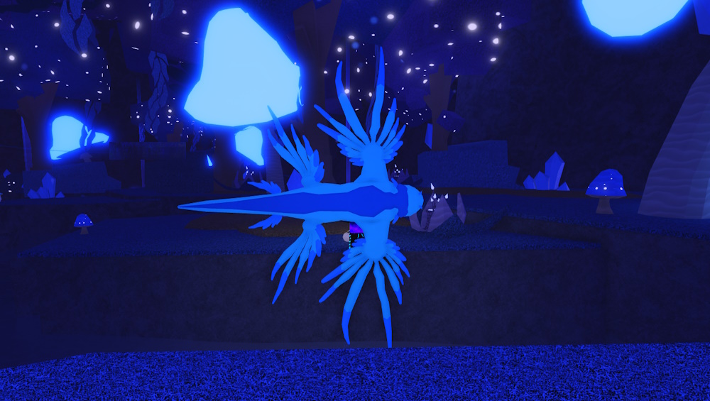Po luminescencyjnej jaskini musisz złapać kolosalny niebieski smok. Jest to egzotyczne stworzenie, które losowo spawnuje się i pozostaje przez 15 minut w pobliżu wodospadów. Preferowaną sytuacją do złapania kolosalnego niebieskiego smoka jest wyraźna pogoda, wiosenny lub letni sezon oraz przynęta rekina.