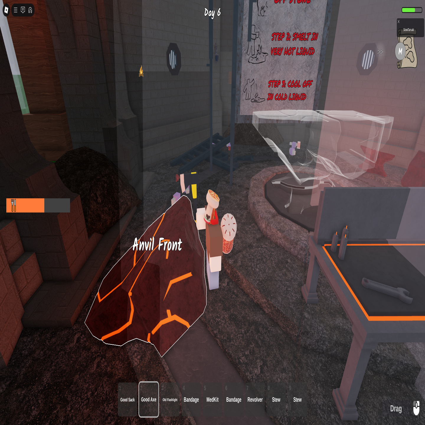 W budynku czerwonego kowadła najpierw musisz odbudować kowadło, przeciągając front kowadły, kowadło do tyłu i kowadły do konturu na środku komory.
