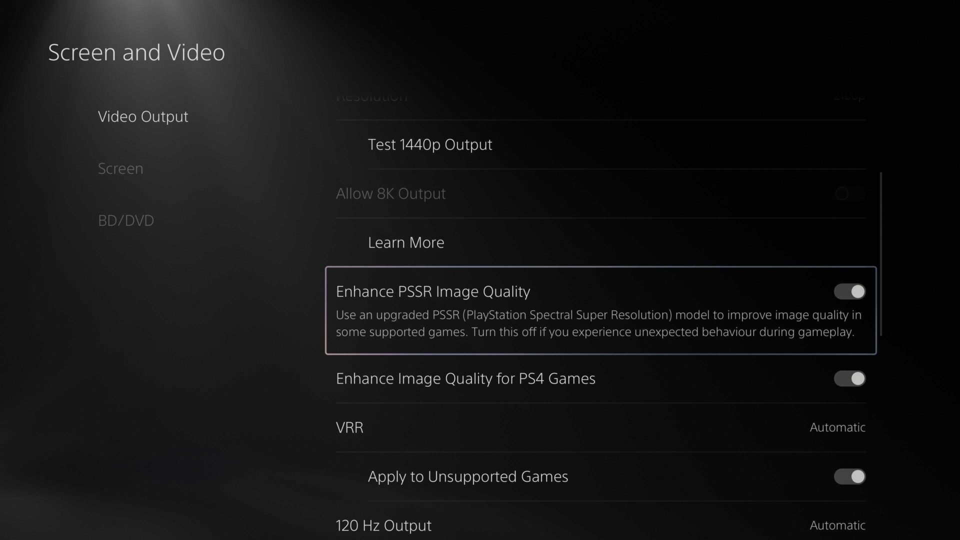 - Włącz opcję Enhance PSSR Image Quality