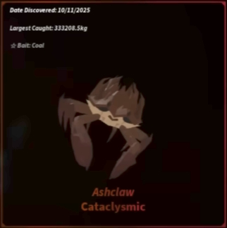 Mając już przyzwoitą wędkę, możemy skupić się na utrzymaniu odpowiednich warunków do złowienia tego stwora. Ashclaw w Fisch nie ma preferencji dotyczących pory roku, pogody ani czasu, a jego ulubioną przynętą jest węgiel w Fisch.