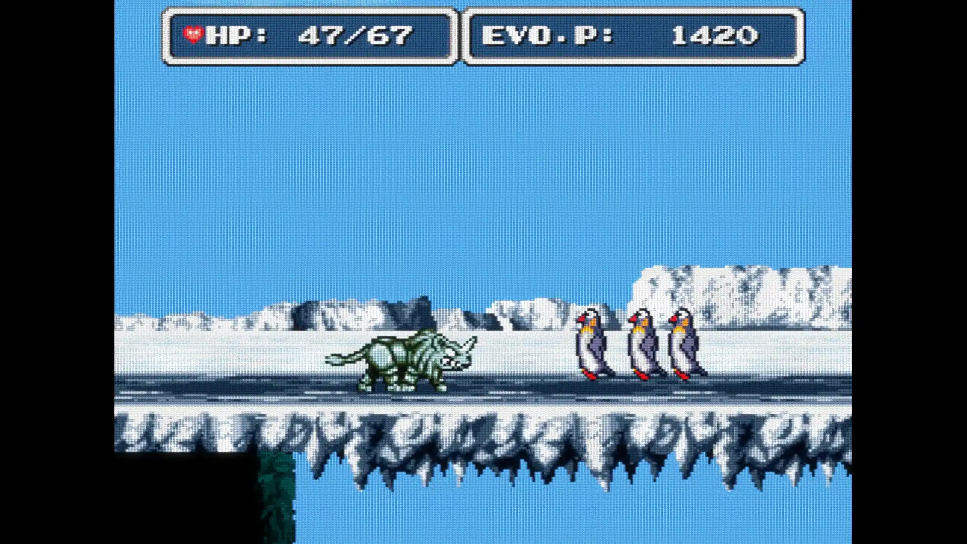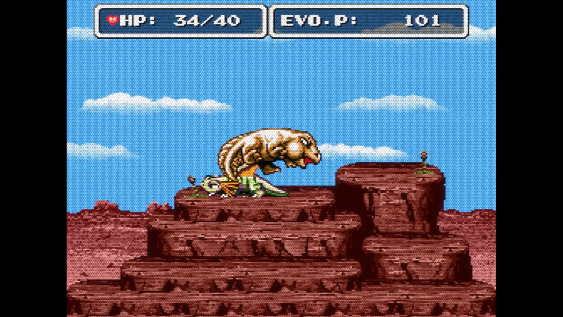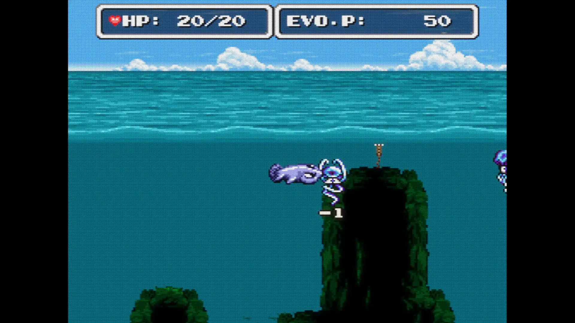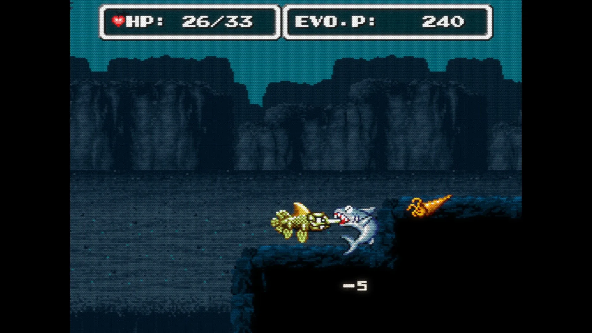 W skrócie, punkty E.V.O. to w zasadzie doświadczenie, które służy nam do ewoluowania naszego podopiecznego. Wprawdzie największe przeskoki narzuca nam fabuła, więc przemiana z ryby w płaza czy jeszcze później w ssaka nie kosztuje nas nic. Zdobywane punkty wydawać możemy natomiast w obrębie każdego z etapów rozwoju na nowe części ciała jak chociażby silniejsze szczęki, dłuższa szyja, większy rozmiar ciała czy poroże. Trzyma się to oczywiście pewnej logiki, więc rybie nie dorzucimy nóg, a ssakowi fikuśniejszych płetw, ale przez cały czas różnorodność dostępnych części ciała i dowolność w ich wyborze robi wrażenie choćby dzisiaj, pozwalając na kreację niekiedy bardzo dziwacznych stworzonek (konkretne „buildy” możemy też zapisywać, by zamienić się w nie później na chwile przy pomocy specjalnych kryształów).