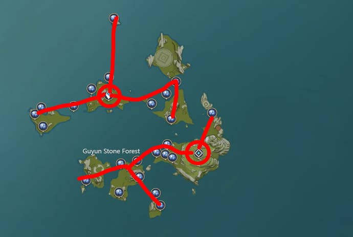 Lokalizacje Starconch są dogodnie rozmieszczone w pobliżu punktów teleportacyjnych, dzięki czemu możesz wskoczyć i zebrać to, czego potrzebujesz ze względną łatwością. Jak zawsze w przypadku hodowli materiałów, najlepiej zacząć od pobliskiego punktu teleportacji lub domeny, a następnie stamtąd się wydostać.