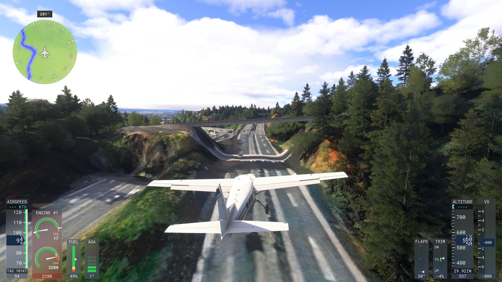 Mimo ponad roku obecności na rynku, Microsoft Flight Simulator 2024 wciąż nie rozwiązał problemu widocznego poniżej 500 metrów. Samochody dalej wjeżdżają w góry i budynki, tankowce wbijają się w plaże i linie brzegowe, a tory są puste. Ułuda żywego świata w skali makro nie została w żaden sposób dopracowana, przez co symulator pozostaje równie piękny, co nienaturalny. Biorąc pod uwagę, iż bazowy MFS został wydany w 2020 roku, twórcy od pół dekady stoją z tym tematem w miejscu.