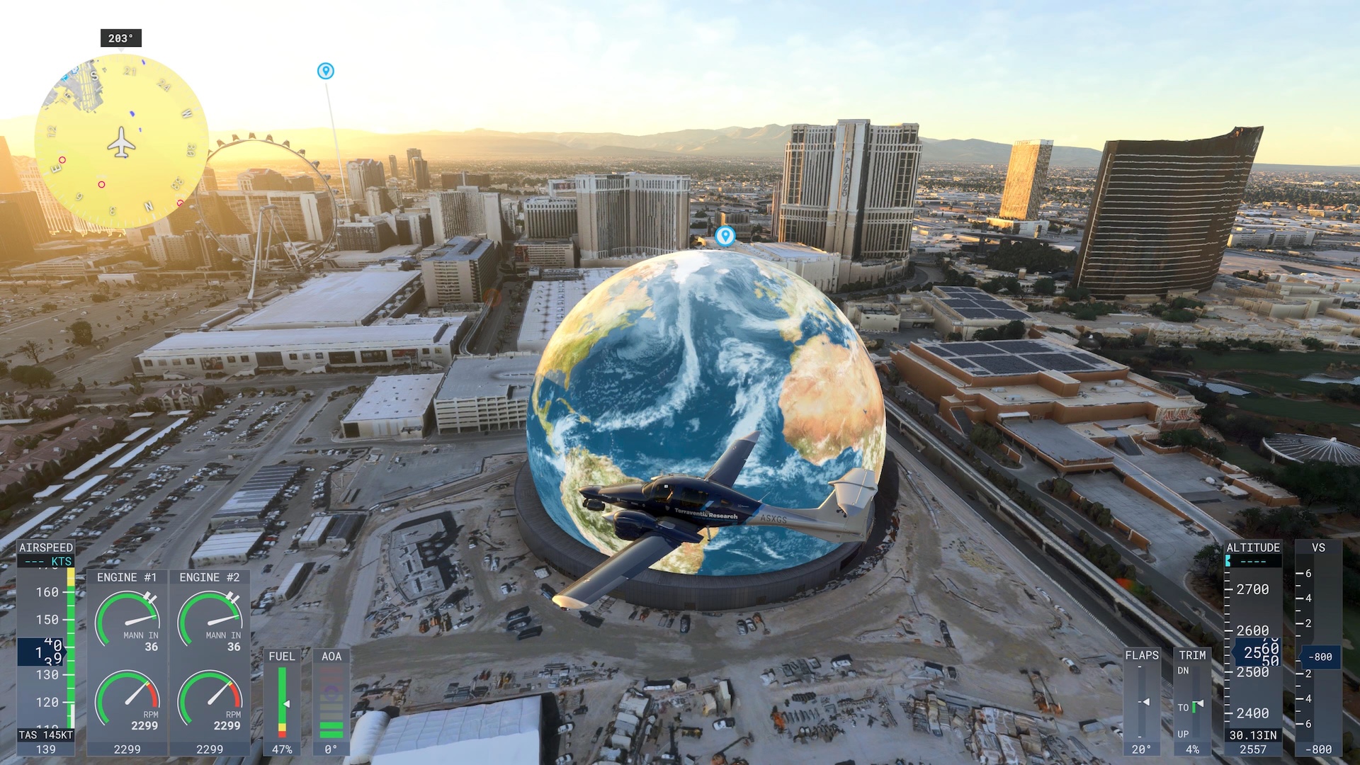 Na moich zrzutach ekranu być może brakuje efektu wow, ale uwierzcie: gdy lecicie nad Tokio albo nad Bali, ustawicie zachód słońca i obniżycie się do poziomu 300 metrów, można się zakochać. MFS2024 jak mało która gra pokazuje piękno naszego świata. Czasem piękno naturalne, jak norweskie fiordy, czasem sztuczne i ludzkie, jak Vegas nocą.
