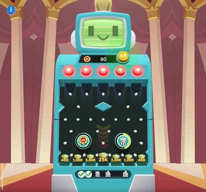 Gracze upuszczają żetony Prize Drop z jednej z pięciu pozycji startowych u góry maszyny Peg-E. | Źródło obrazu: Scopely