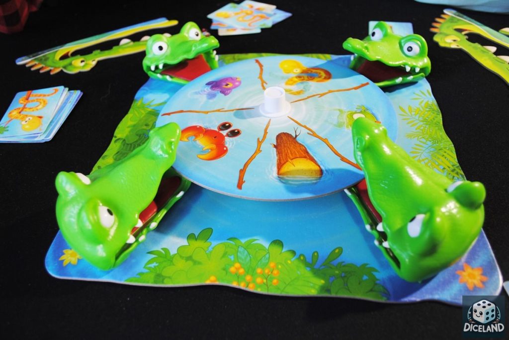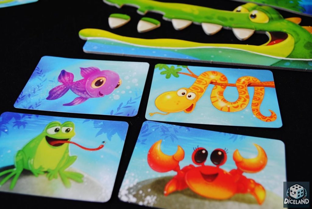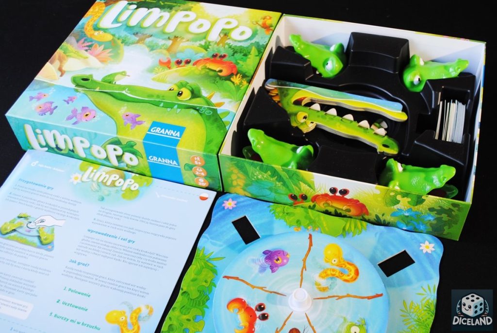 Limpopo to sympatyczna gra dla dzieci, w której główną atrakcją jest „kłapanie” paszczą krokodyla. Ważne, aby zrobić to we właściwym momencie, gdyż zatrzymanie planszy na adekwatnym przysmaku może dać na punkty. Jest to niestety również obarczone sporym ryzykiem, gdyż wymaga wylosowania od któregoś z graczy karty. jeżeli będziemy mieć pecha, trafimy na kłodę, która z kolei powoduje usunięcie zęba na naszej planszetce… Kartę możemy zdobyć również bez „kłapania”, wystarczy bowiem, żeby nasza paszcza znajdowała się na adekwatnym obrazku… Jest to oczywiście losowa taktyka, ale na dłuższą metę sprawdza się nie gorzej niż polowanie na wybrane składniki. Zatrzymać planszę we właściwym miejscu jest ciężko, a dodatkowo nie raz kosztuje to utratę zębów… Dzieci zwykle się tym nie przejmują i z euforią „polują” na wybrane składniki podejmując ryzyko…