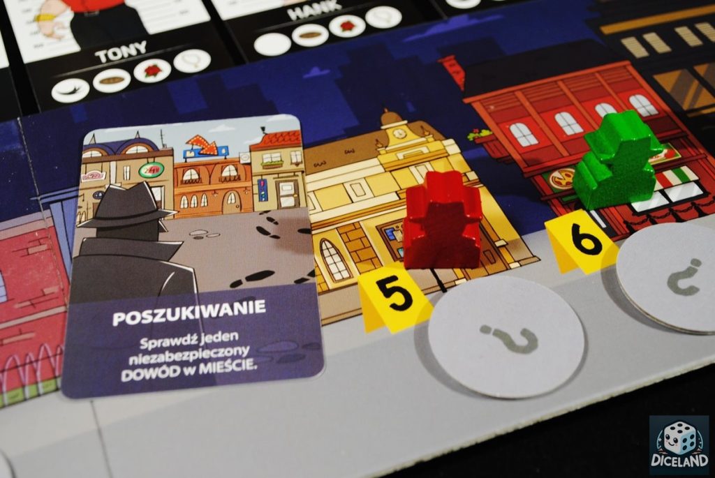 Najlepiej grało mi się w składzie 2-osobowym, wtedy każdy z graczy miał porównywalną możliwość dostania się do dowodów. A należy podkreślić, iż bez względu na ilość graczy pól jest tyle samo. Zwiększa się jedynie ilość rozgrywanych rund. Może więc się zdarzyć, iż na początku zabawy poustawiamy meeple na polach, a kolejne 2, czy 3 rundy, będziemy odrzucać karty, które pozwalają na przeszukanie danego miejsca. Po ustawieniu pionków pozostaje już tylko możliwość przesłuchania, która jak już wspomniałam, jest o wiele mniej dokładną i zdecydowanie wolniejszą metodą odkrywania tożsamości przestępcy. 11 podejrzanych możemy zatem potraktować bardziej jako zagadkę, w której dedukcja jest prosta, ale nie zawsze zawierająca dostateczną liczbę informacji. Nie przeszkadza to jednak w dobrej zabawie, szczególnie w gronie początkujących graczy, dla których bardziej liczy się detektywistyczny klimat i przyjemne kombinowanie.