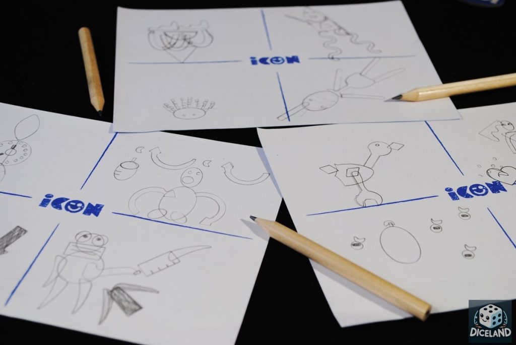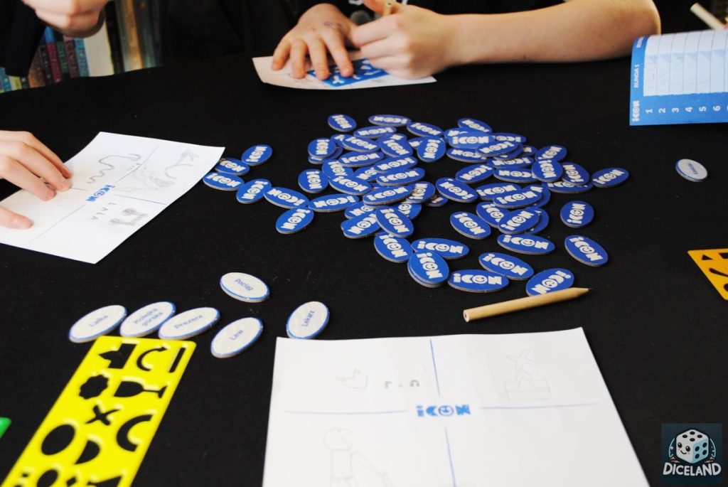 Jak grać w ICON? Jak w każde inne kalambury rysunkowe, z jedną znaczącą różnicą – do przedstawiania haseł, musimy wykorzystywać specjalne szablony. Nie możemy dorysować nic „po swojemu”, a każdy kształt musimy przenieść na kartkę w całości. Kiedy wszyscy ukończą swoje obrazki (jeśli chcemy, to ustawiamy stoper i ustalamy czas na rysowanie), wrzucamy wykorzystane żetony do woreczka i dodatkowo dobieramy dwa hasła „pułapki”. Potrząsamy woreczkiem, a następnie wyjmujemy z niego po jednym żetonie. Gracze zapisują imię osoby, która według nich przedstawiała dane hasło lub zapisują, iż to żeton dodatkowy. Cała gra trwa 4 rundy, po czym następuje podliczenie uzyskanych punktów. Za każde adekwatnie odgadnięte hasło, gracze otrzymują po 1 punkcie. Najwięcej punktów można otrzymać za swój rysunek – po jednym punkcie za każdego gracza, który wskazał nas, jako autora adekwatnego obrazka.