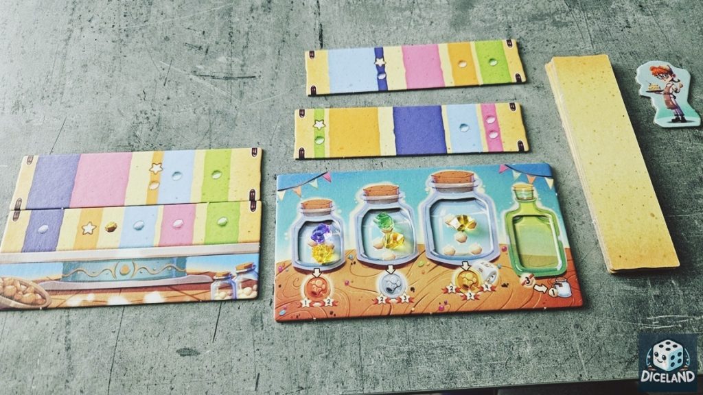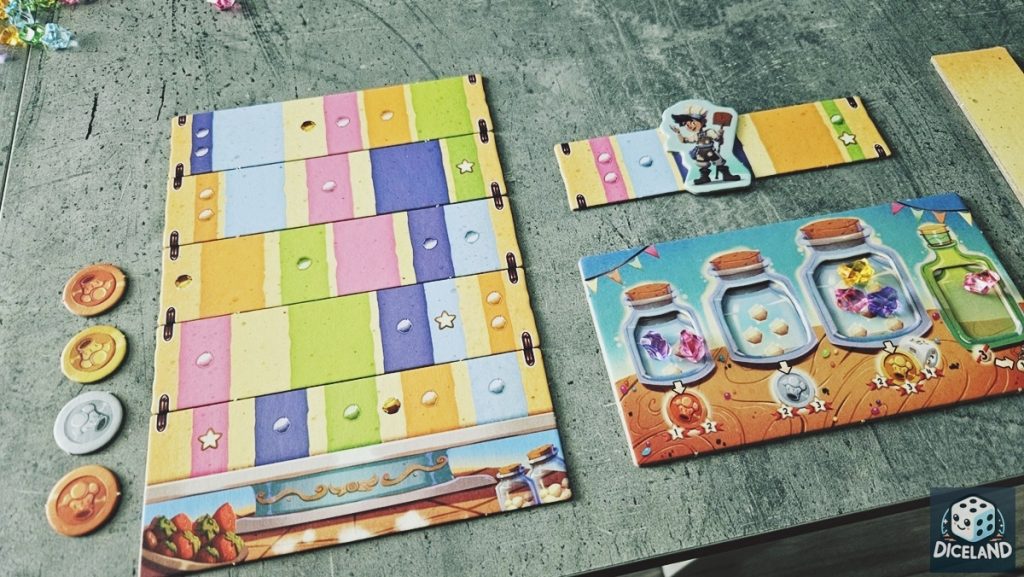 Zarządzanie słoiczkami – zebrany cukier wrzucamy do osobistych słoików o różnych pojemnościach; gdy słoik zapełni się wymaganymi różnymi kolorami, zamieniamy kryształki na żeton punktów.