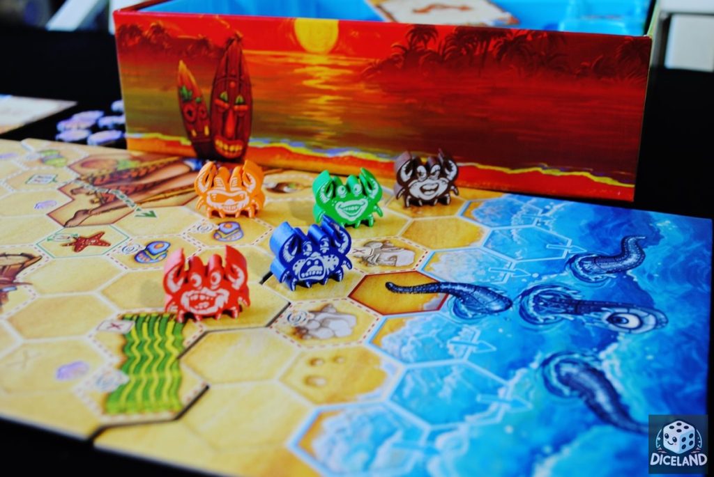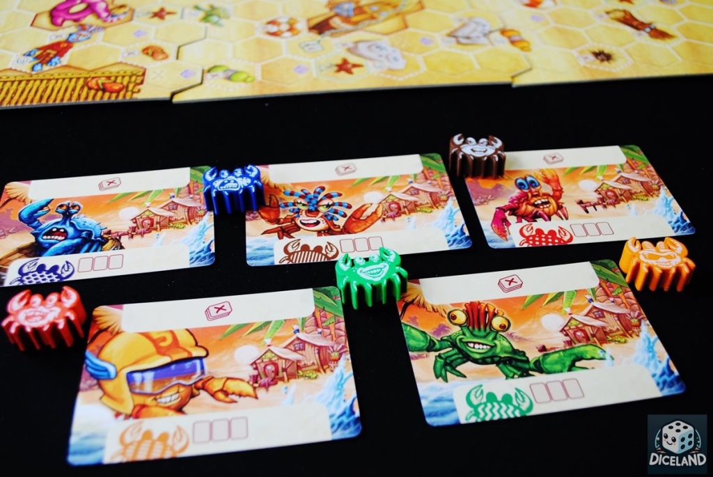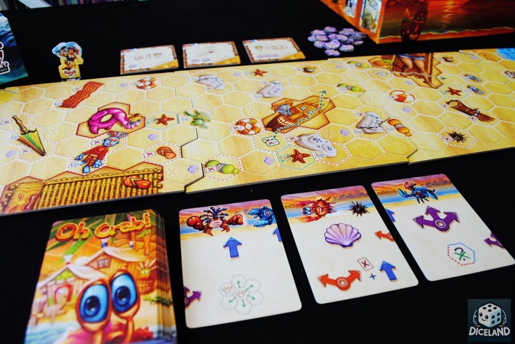 Zasady gry są proste, ale muszę przyznać, iż na początku raczej się na to nie zapowiadało… Faza planowania i akcji, szczególnie dołączania kart do „śladu” i odpoczynek, wcale nie były takie intuicyjne, jak mogłoby się wydawać. Na szczęście po pierwszej rozgrywce, wszystko było już jasne, a gra okazała się płynna i nieskomplikowana. W trakcie zabawy będziemy zagrywać karty, które umożliwią nam poruszanie się naszym krabem po plaży. Co więcej, możemy również korzystać z płytek akcji dodatkowych i tworzyć kombosy, które przesuną naszego skorupiaka na prowadzenie. Na trasie napotkamy wiele przeszkód, będziemy również przepychać się z innymi krabami. Rozgrywka kończy się dodarciem do morza, które w końcu zapewni naszemu krabowi upragnione bezpieczeństwo…