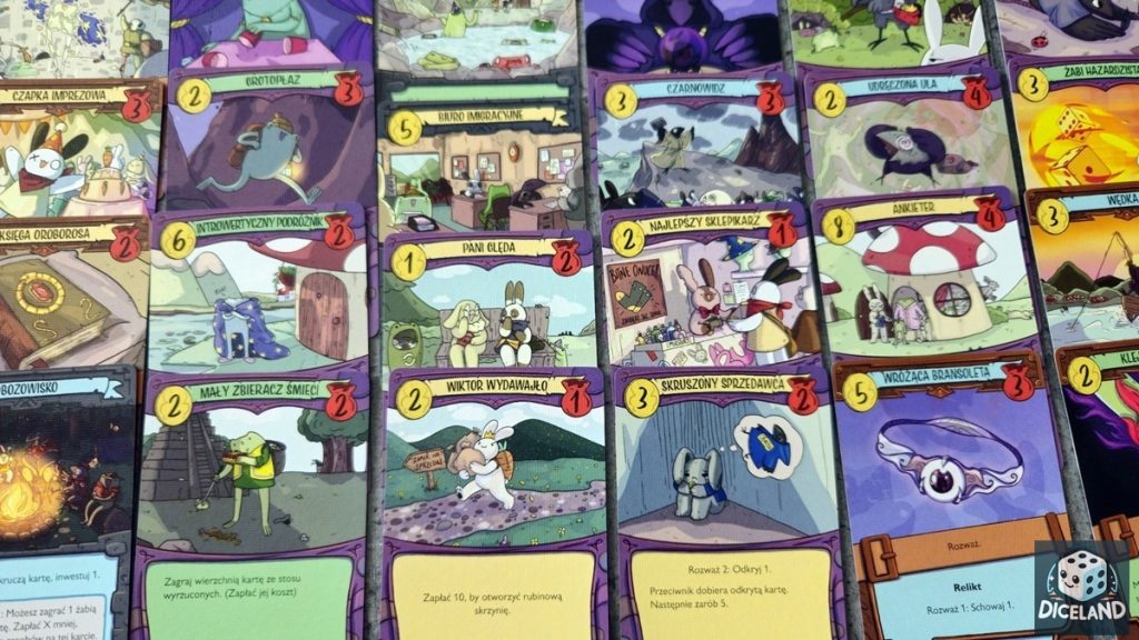 Punktowanie oparte na „zużywaniu” kart i specyficznych warunkach budynków bywa mało czytelne dla nowych graczy i wymaga 1–2 partii, aby w pełni „kliknęło”. Do tego dochodzi konieczność pilnowania, które karty jeszcze warto eksploatować, a które już trzeba „odpuścić”, aby w ogóle zapunktowały, co może być dość wymagające i męczące dla osób preferujących prostsze systemy.