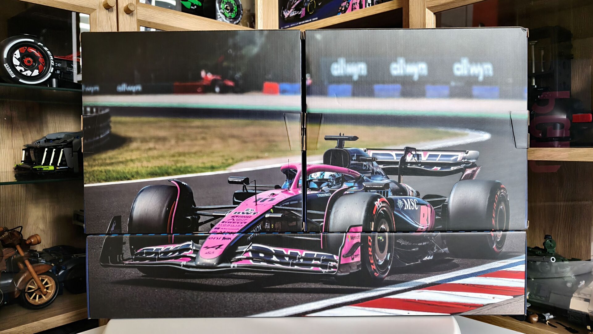 Natomiast w długim prostokącie ukryto felgi oraz opony, każdy z tych elementów zapakowano w osobny woreczek. W pudełku nie ma żadnych naklejek. Jest tu również duża tabliczka z nadrokowanym bolidem w technologi UV. Podczas budowy bolidu, możemy wybrać, czy budujemy samochód Pierre Gasly’ego lub Franco Colapinto. Wpływ na to mają trzy element: nos, tylna płetwa oraz lotka nad wlotem powietrza do silnika.