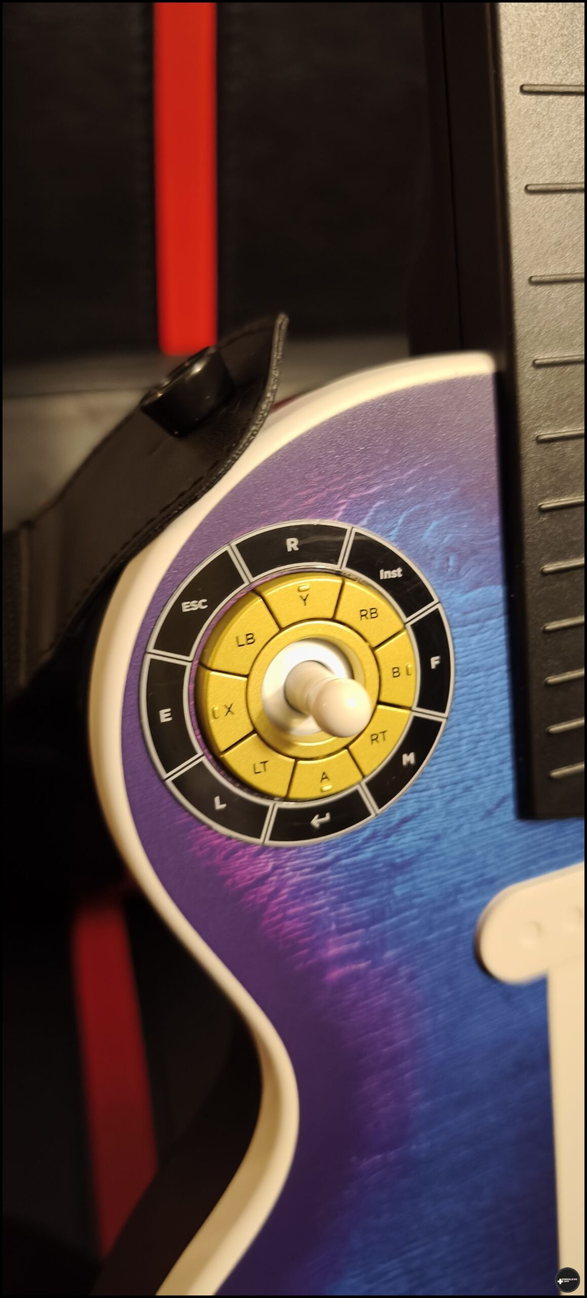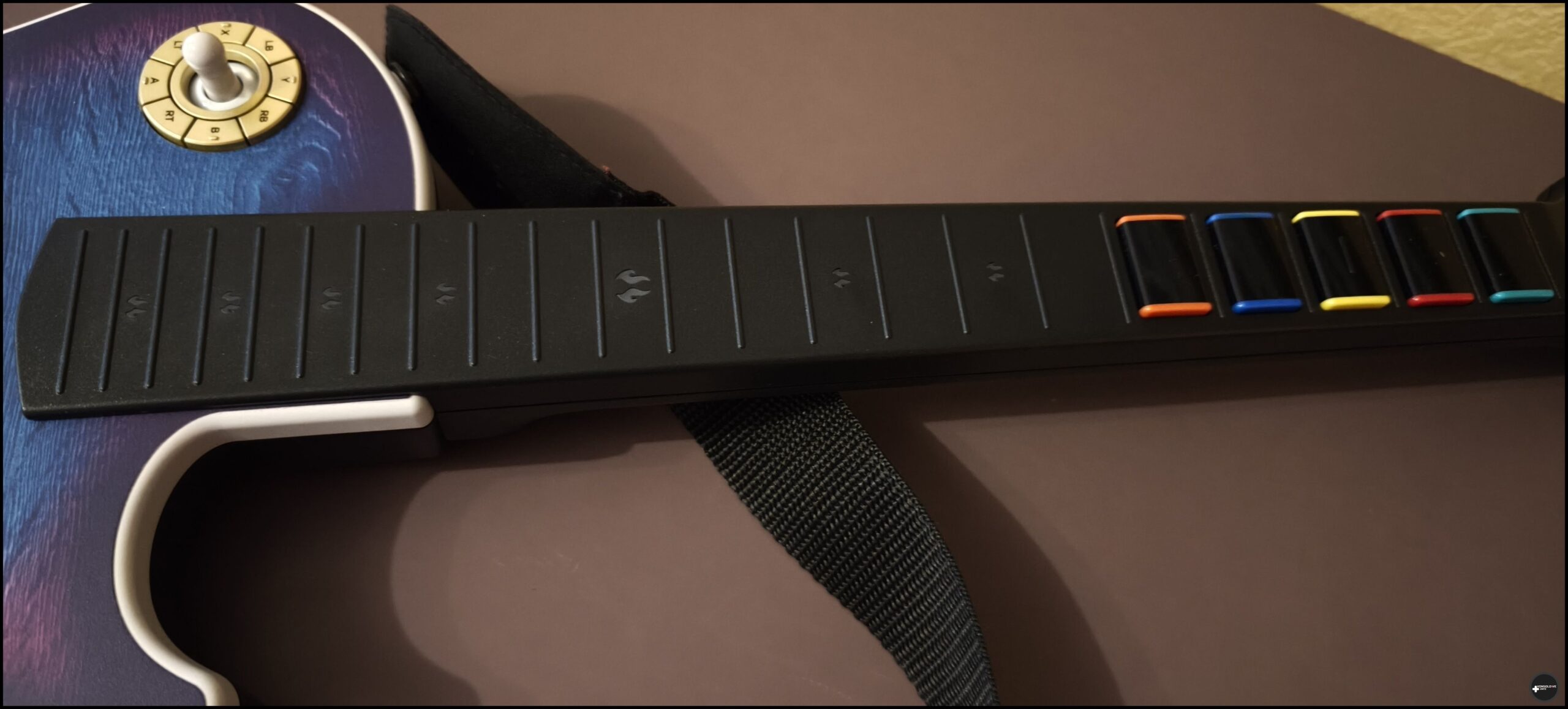 Struna jest za to niestety bardzo głośna. Na tyle, iż zdecydowanie polecam granie w słuchawkach, natomiast nie rekomenduję grania w nocy. Współdomownikom może to przeszkadzać. Doceniam natomiast przyjemne wibracje (których siłę możemy dostosować) oraz to, iż struna posiada efekt Halle’a. Powinno to skutecznie przeciwdziałać wyrobieniu się jej. Uważam też, iż kolorowe przyciski na progach mogłyby być wyraźniej zaznaczone i zaoblone. Z pewnością uprzyjemniłoby to korzystanie z tego kontrolera.