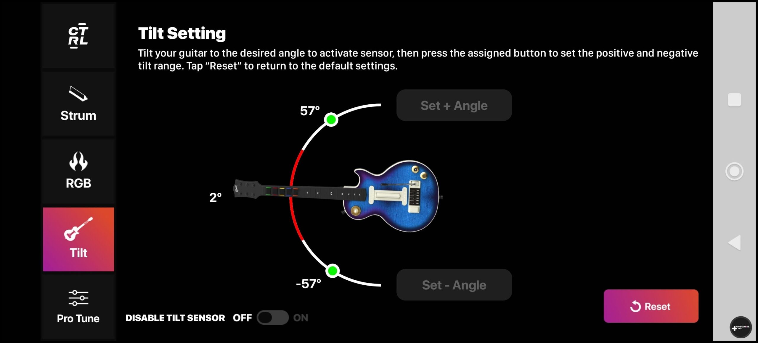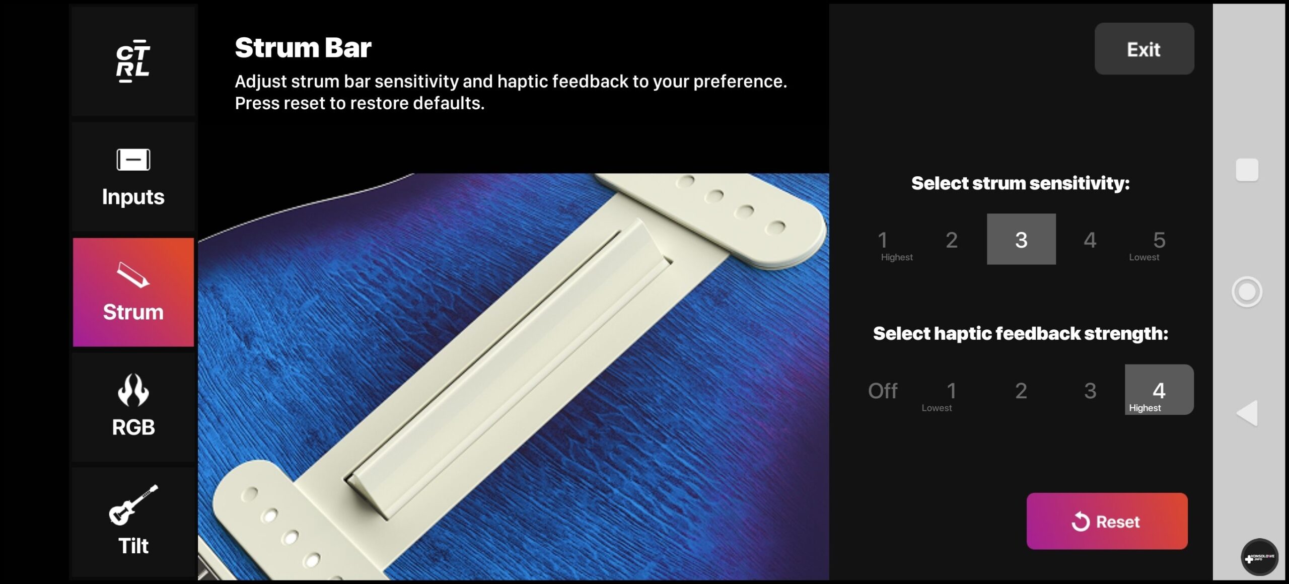 Jeśli mimo wszystko przez cały czas Wam mało personalizacji, to na stronie producenta – pod tym adresem – znajdziecie alternatywne elementy kolorystyczne dla gitary. Personalizacja to jedna z największych zalet tego kontrolera. Nie bez znaczenia jest możliwość dostosowania działania przycisków i przypisanie im konkretnego przycisku z klawiatury bądź pada – zależnie od wybranego trybu. Producent pozwolił bowiem na zapisywanie w kontrolerze kilku profili, które przełączamy po prostu pokrętłem na korpusie – od pozycji numer 1 aż do pozycji numer 9. Aplikacja jest naprawdę dobrze wykonana i polecam każdemu spędzić z nią trochę czasu, aby dostosować działanie i wygląd kontrolera zgodnie ze swoimi preferencjami. Zaznaczę, iż nie ma też przeszkód, aby w ogóle wyłączyć wykrywanie ruchu gitary.