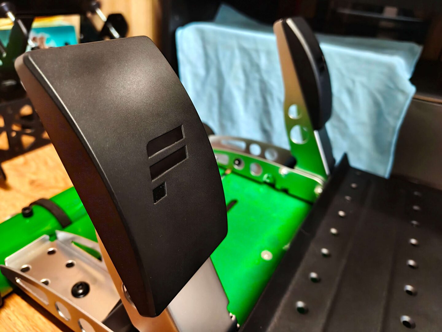 Sztywniejsza sprężyna pedału hamulca w połączeniu z amortyzatorem z pianki poliuretanowej zapewnia całkiem realistyczne i progresywne wrażenia. Niestety tego samego nie mogę napisać o pedale gazu, który nie ma żadnych ograniczeń oraz regulacji nacisku. Działa zbyt lekko, na tyle, iż jestem w stanie go wcisnąć do dechy najmniejszym palce w mojej dłoni. Z tego tez powodu nie grałem w gry z serii EA F1, gdyż już w Gran Turismo 7 miałem duże problemy, aby czysto wyjść z zakrętów o kącie 90 stopni lub mniej. Na poniższym nagraniu możecie zobaczyć, jak mam duże problemy z opanowaniem Mercedesa CLK-LM z 98′ na torze Red Bull Ring. Szczególnie w zakrętach 3 i 4 (Remus i Schlossgold) tył dosyć łatwo mi uciekał choćby z kontrolą trakcji ustawioną na 5.