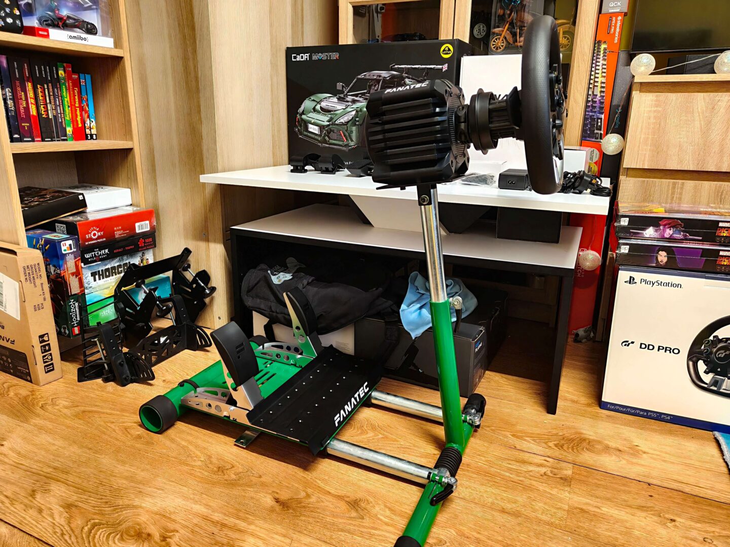 Ja postanowiłem zamontować FANATEC Gran Turismo DD Pro do polskiego stojaka Wheel Stand Pro, którego recenzje przeczytacie w tym miejscu. “Nasz stand” ma tyle różnych otworów, iż bez problemu przykręciłem bazę dzięki czterech śrub do górnej półki. Troszkę trudniej było dopasować manipulatory nożne, ale ostatecznie udało mi się je przykręcić dzięki dwóch śrub. Montaż do stojaka jest tym bardziej opłacalny, iż bazę i pedały z zestawu FANATEC DD Pro możemy używać nie tylko z PS5, PC, ale także z konsolami… XBOX!