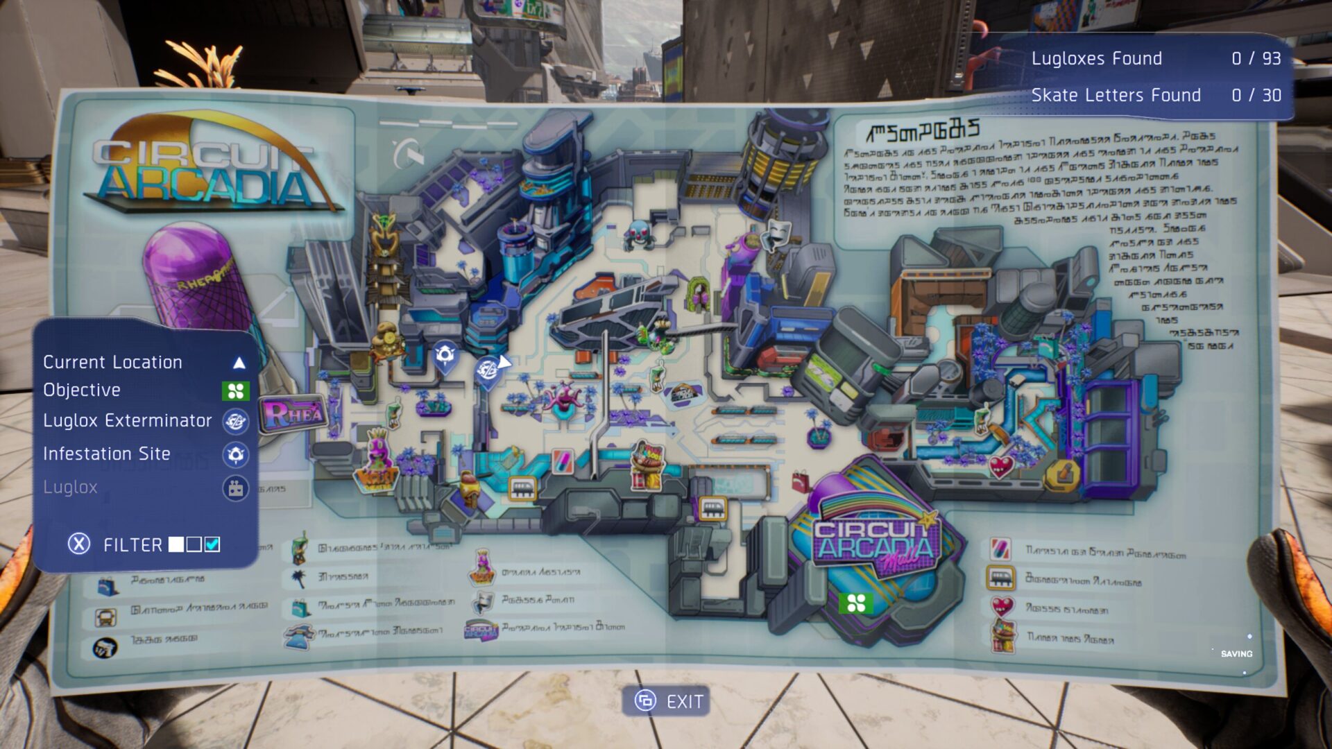 Interfejs pozmieniał się niezncznie, dodane zostały jednak nowe zakładki, które pozwolą nam na dostosowanie naszego wyglądu i deskorolki. Każda odwiedzana przez nas dzielnica będzie miała swoją mapę, oczywiście w jezyku kosmitów, ale część oznaczeń na nich wciąż będzie przydatna.