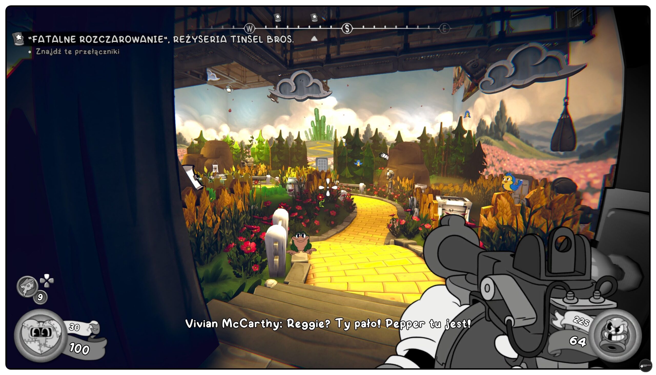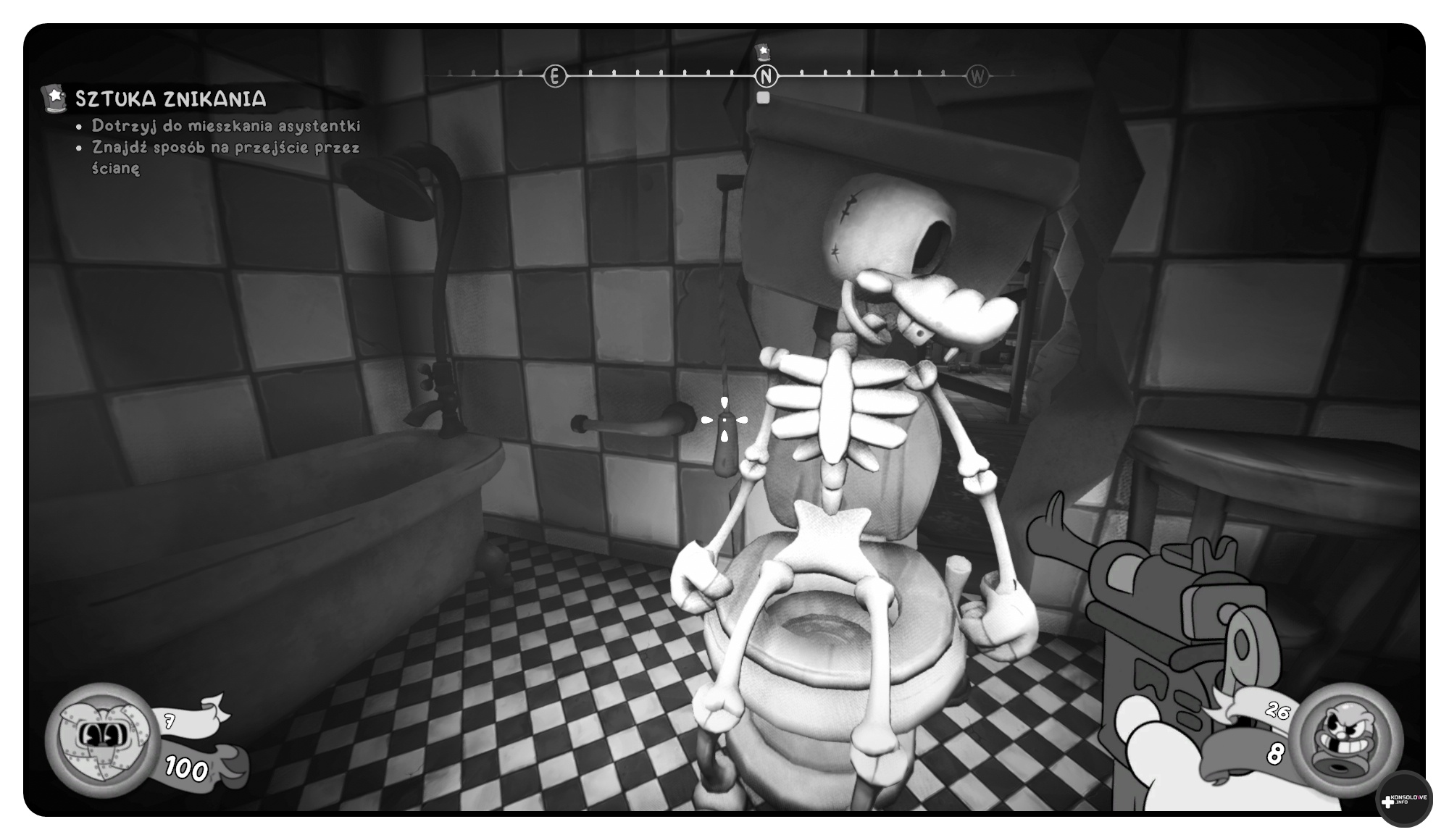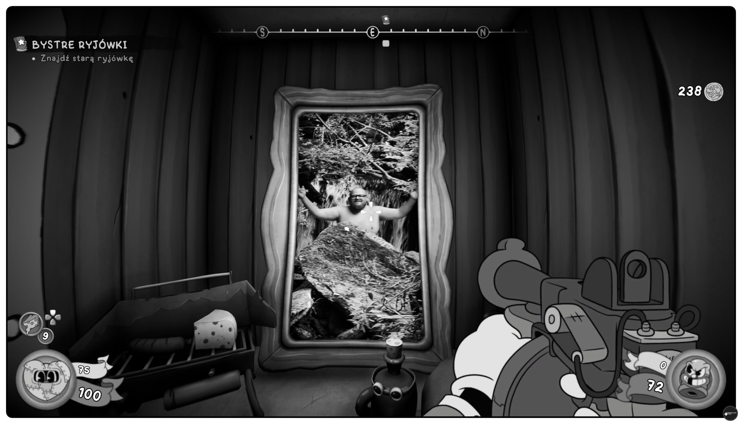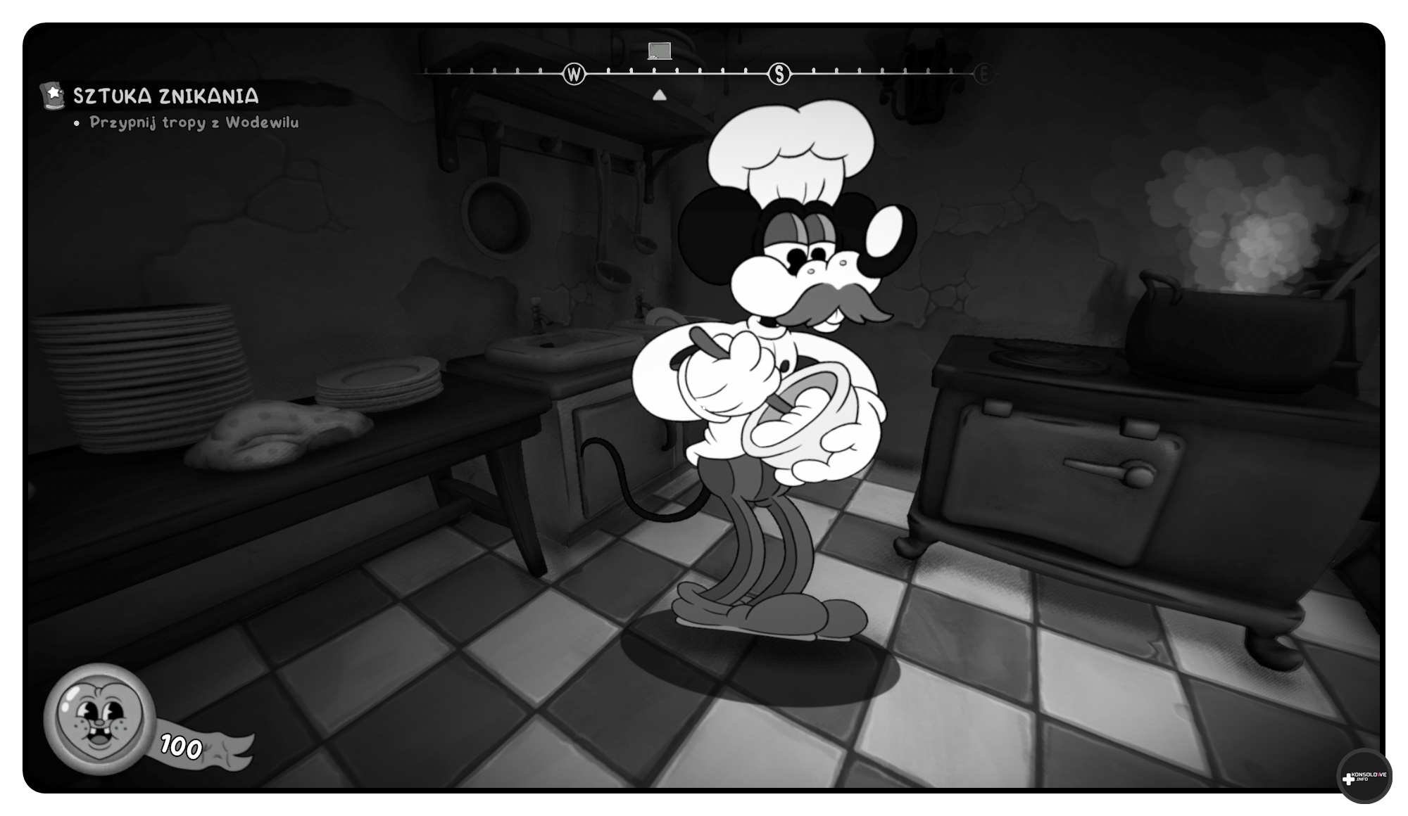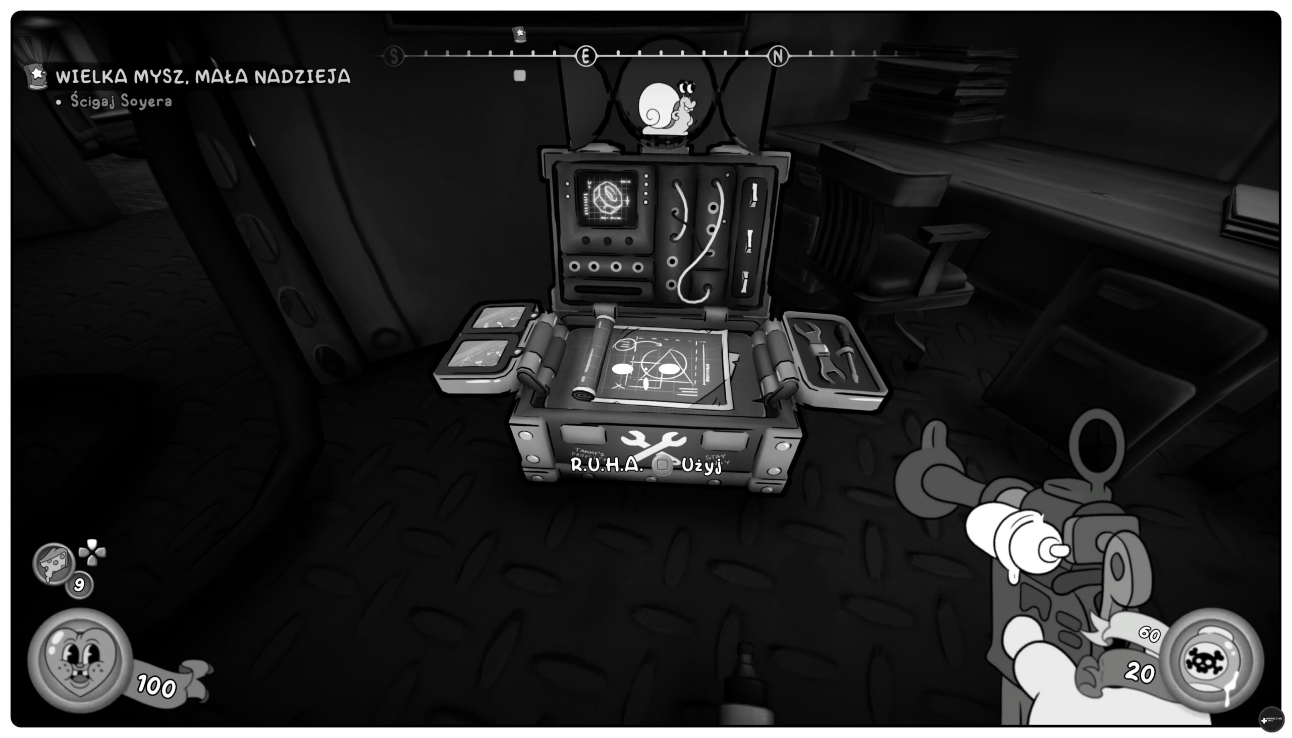 PS5Zacznijmy od tego, iż każda broń ma inny symbol amunicji, która często sama w sobie posyła nam groźne spojrzenie. Przedstawienie pocisków jako wyczekujące akcji postaci nieraz wywoływało uśmiech na mojej twarzy i sprawiało, iż byłem ciekaw kolejnej spluwy, jaką odblokuję. Fumi Games stara się też upodobnić swoją grę do czarno-białego komiksu (którego strony możemy nomen omen szukać w poziomach). Dlatego kiedy zbliżamy się do jakiejś postaci, to obraca się zawsze w naszą stronę, ukazując nam swoją płaską stronę. Natomiast po pokonanych przeciwnikach zostają – również obracające się ku nam – wielkie oczy na kupce popiołu. Nie mogę też nie docenić groteskowego wręcz wyginania się broni podczas przeładowywania ich. A co powiecie na otwieranie zamkniętych drzwi dzięki ogona naszego detektywa, czy na wykorzystanie tego ogona (po odblokowaniu tego fabularnie) do przelatywania niewielkich odległości niczym Rayman? Znajdzie się też coś dla fanów Indiany Jonesa. MOUSE: P.I. For Hire zaskakuje bardzo często i odkrywanie tej gry było dla mnie niesamowitą przyjemnością. Dużo dostrzegą na pewno gracze z Polski. Możemy się natknąć między innymi na gumkę do mazania firmy Matejko. Świetnie wypadają też odnajdywane notatki, czy reklamy.