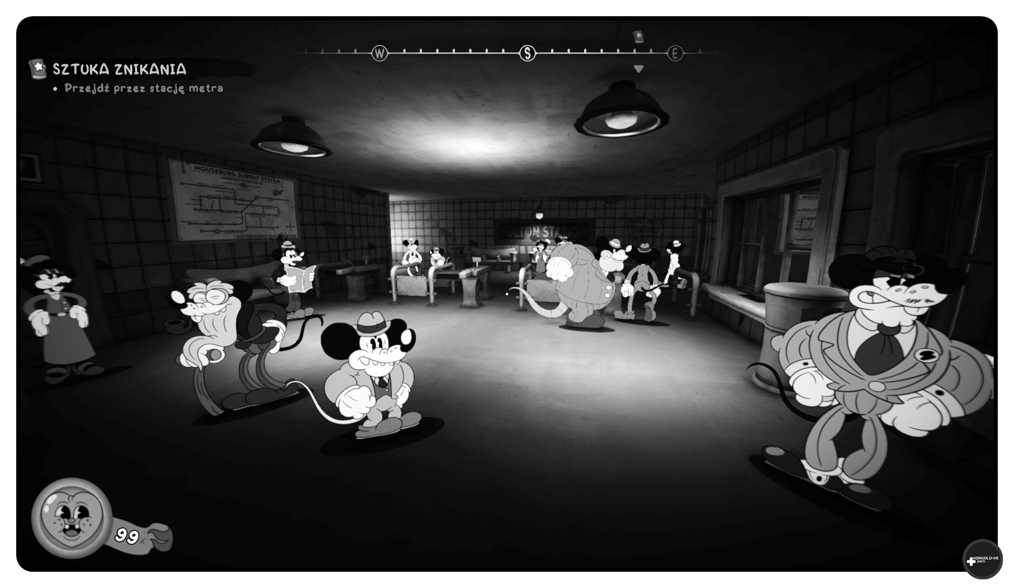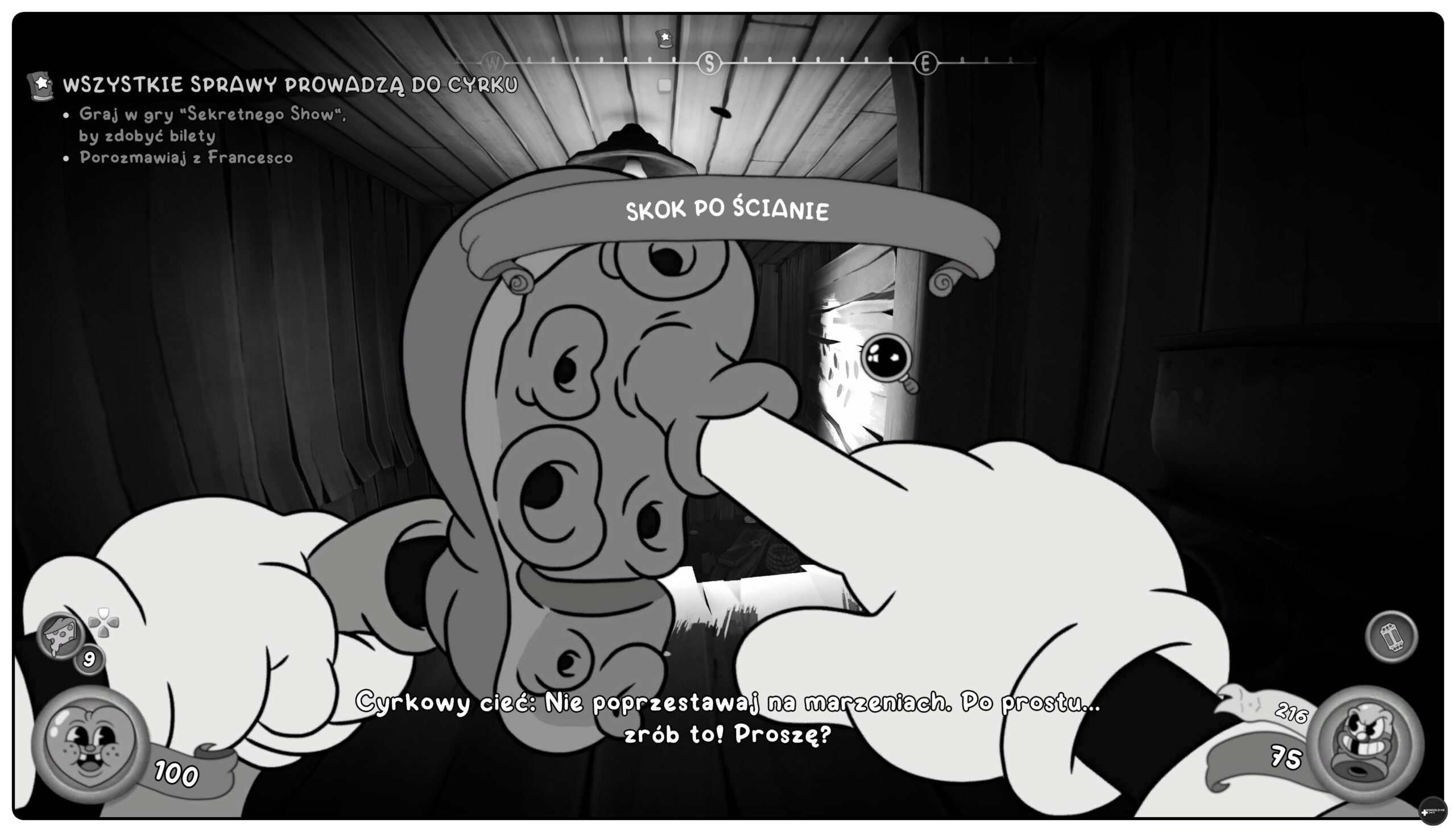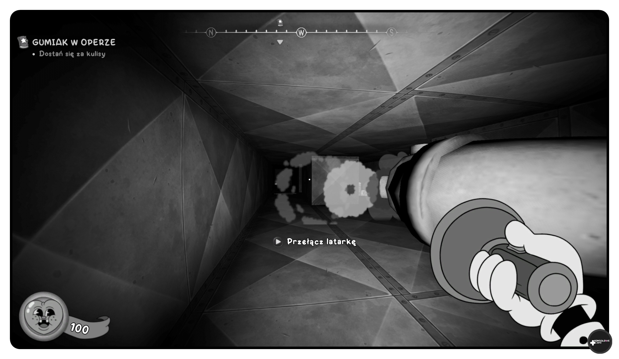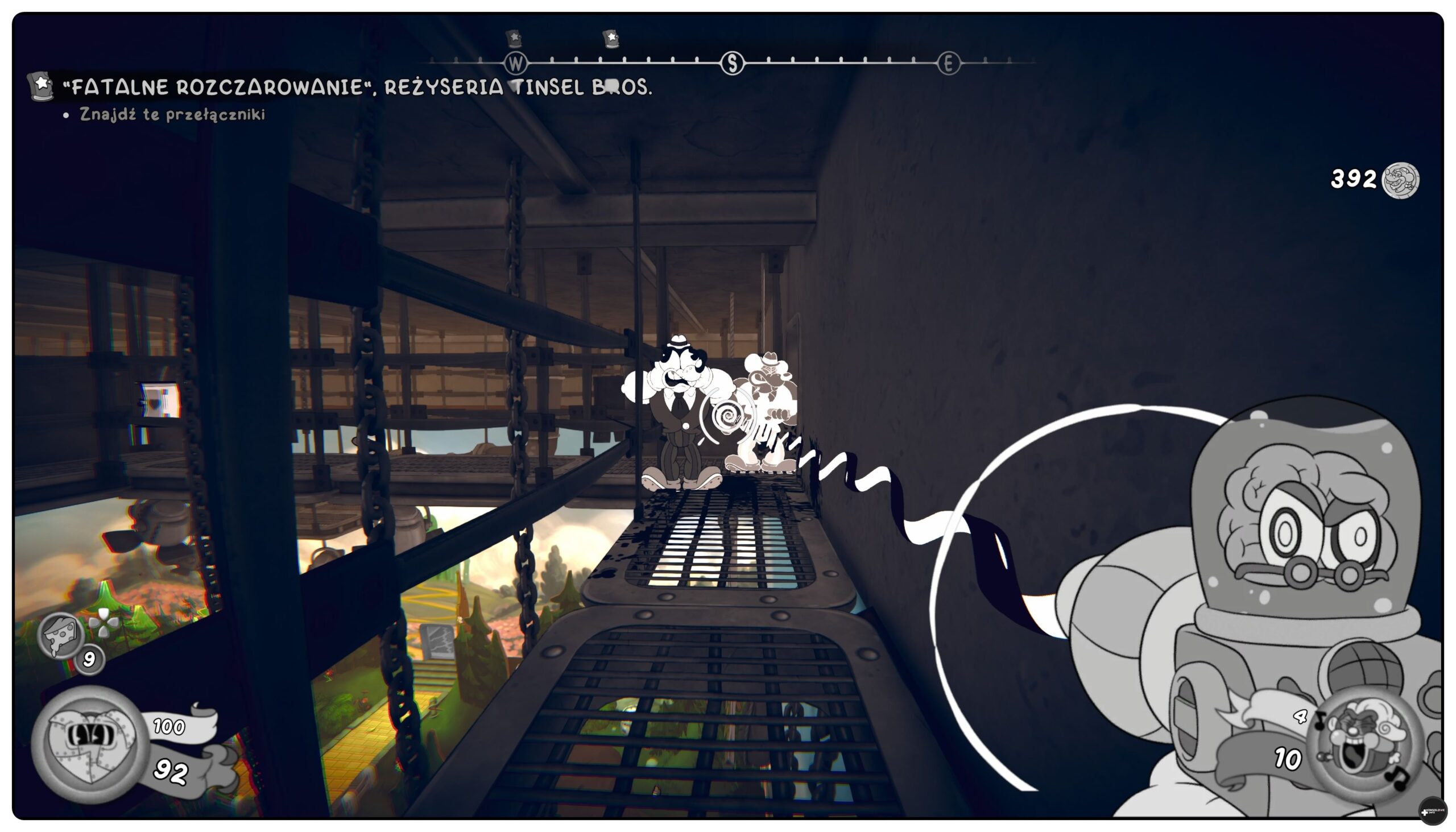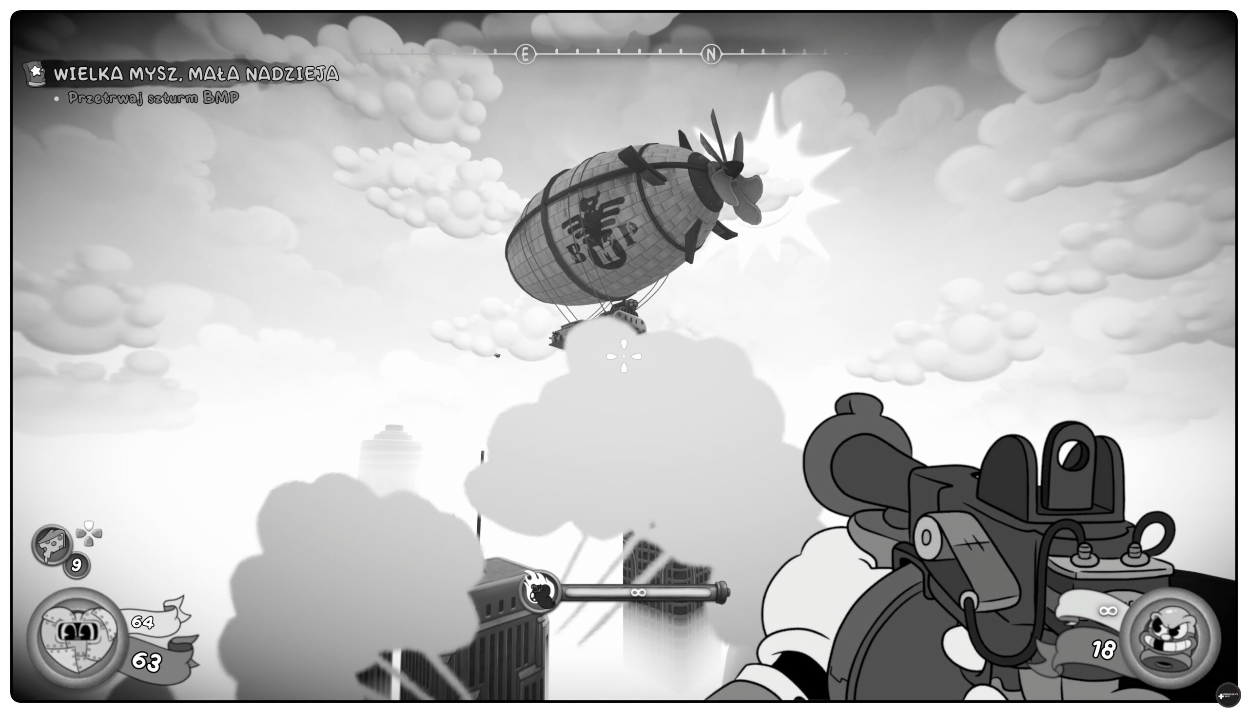PS5Zacznijmy od tego, iż każda broń ma inny symbol amunicji, która często sama w sobie posyła nam groźne spojrzenie. Przedstawienie pocisków jako wyczekujące akcji postaci nieraz wywoływało uśmiech na mojej twarzy i sprawiało, iż byłem ciekaw kolejnej spluwy, jaką odblokuję. Fumi Games stara się też upodobnić swoją grę do czarno-białego komiksu (którego strony możemy nomen omen szukać w poziomach). Dlatego kiedy zbliżamy się do jakiejś postaci, to obraca się zawsze w naszą stronę, ukazując nam swoją płaską stronę. Natomiast po pokonanych przeciwnikach zostają – również obracające się ku nam – wielkie oczy na kupce popiołu. Nie mogę też nie docenić groteskowego wręcz wyginania się broni podczas przeładowywania ich. A co powiecie na otwieranie zamkniętych drzwi dzięki ogona naszego detektywa, czy na wykorzystanie tego ogona (po odblokowaniu tego fabularnie) do przelatywania niewielkich odległości niczym Rayman? Znajdzie się też coś dla fanów Indiany Jonesa. MOUSE: P.I. For Hire zaskakuje bardzo często i odkrywanie tej gry było dla mnie niesamowitą przyjemnością. Dużo dostrzegą na pewno gracze z Polski. Możemy się natknąć między innymi na gumkę do mazania firmy Matejko. Świetnie wypadają też odnajdywane notatki, czy reklamy.