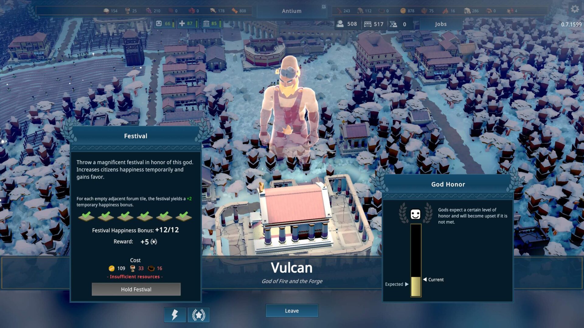 Gdy wykonywanie zadań przestanie zaspokajać ich potrzeby atencji, potrzebne będą większe świątynie i wyprawiane w nich festiwale. Szykujcie się na dużo zużytego złota i innych surowców. Na szczęście nagradza nas to sporawą ilością “punktów”, a także poprawia zadowolenie mieszkańców.