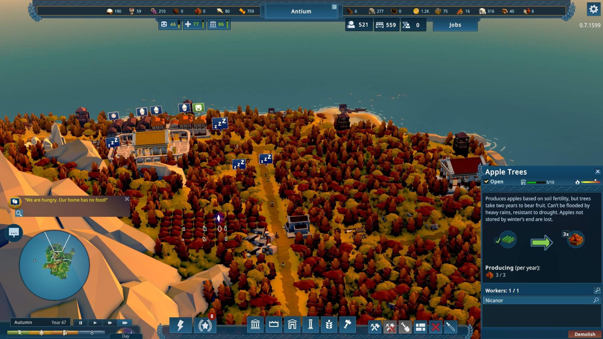 Stawiane przez nas budynki wymagać będą surowców, pracowników i czasu, surowce wymagać będą pracowników, czasu i logistyki. Pracownicy, jak się pewnie domyślacie, potrzebować będą jedzenia, dachu nad głową, dostępu do sklepów i rozrywki, a także dóbr, jak ceramika czy wino. To niekończący się więc cykl zaspokajania coraz większych potrzeb rosnącego społeczeństwa i opiekujących się nim bóstw.