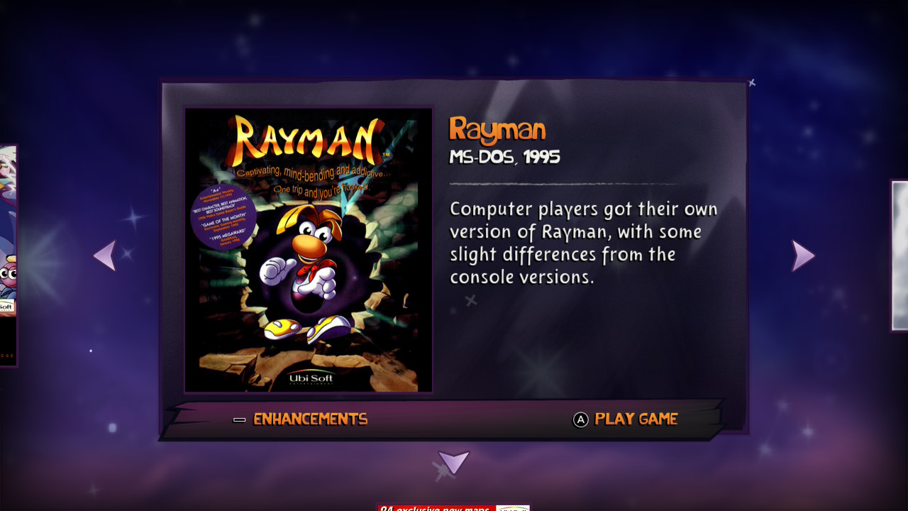 W Rayman: 30th Anniversary Edition znajdziemy oryginalną wersję z PlayStation, edycję z Atari Jaguar oraz wydanie na MS-DOS. Do tego dochodzą mobilne odsłony z Game Boy Color i Game Boy Advance. A to wciąż nie wszystko. W kolekcji znalazł się również nigdy wcześniej oficjalnie nieudostępniony prototyp gry z 1992 roku. Projekt ten powstawał z myślą o konsoli SNES i został przedstawiony jako wczesna wizja gry przez Michela Ancela, twórcę serii.