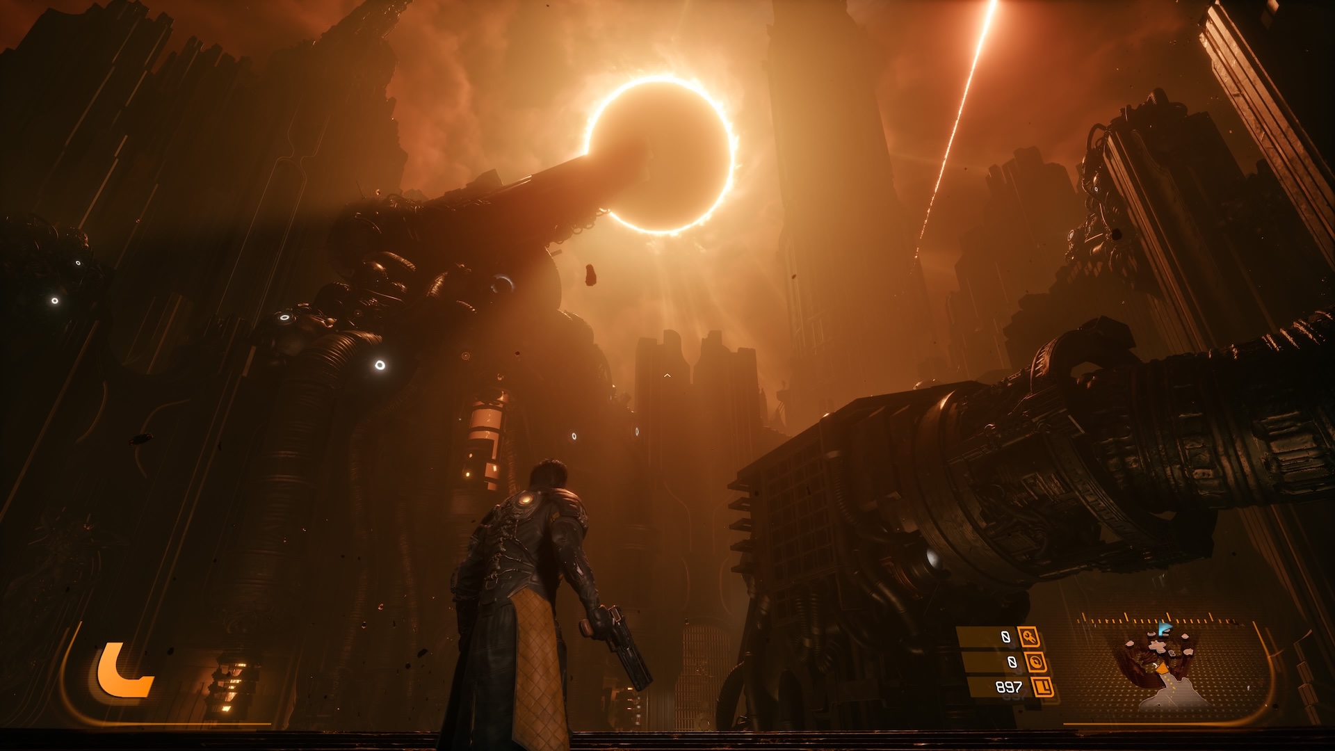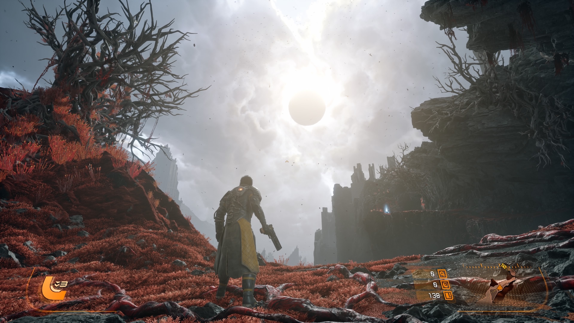 Wizualnie Saros jest z kolei sporym krokiem naprzód względem poprzednika. Widać, iż twórcy wzięli sobie do serca krytykę powtarzalnych środowisk Returnal. Carcosa jest bowiem niesamowicie malownicza, a przy tym nieustannie niepokojąca obrazem zaćmionego słońca. Również przeciwnicy, szczególnie w dalszym toku gry, są groteskowi i robiący wrażenie pokazem świateł i pocisków docierających z każdej strony świata.
