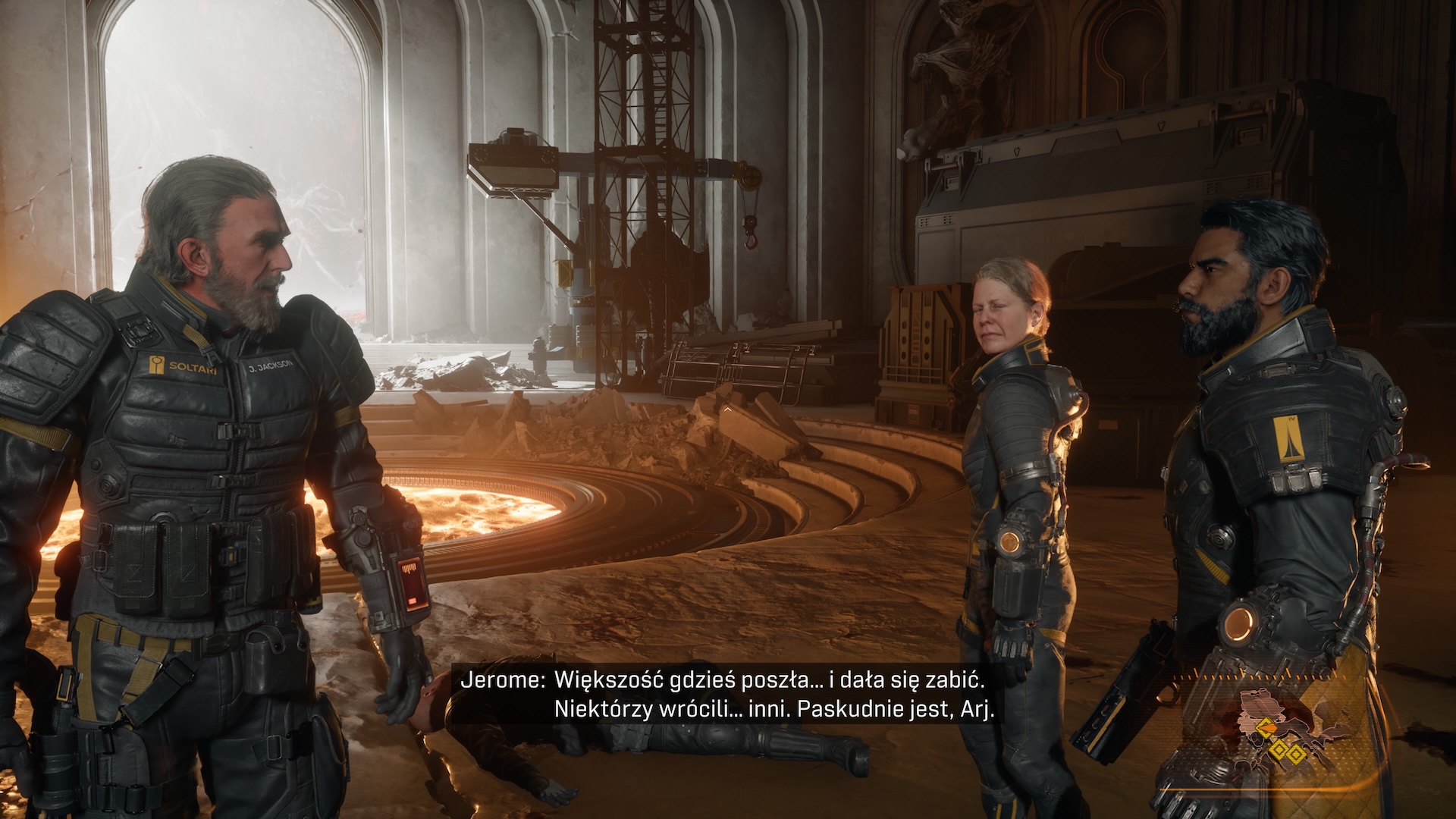 Pochwalę również grę aktorską oryginalnej ścieżki audio. Brytyjski akcent Rahula Kohli’ego sprawił, iż aż chciało się wchodzić w interakcję z innymi postaciami tylko po to, by usłyszeć cięty komentarz ze strony Arjuna. Większość bohaterów pobocznych również stało bardzo wysoko aktorstwem, jednak mam tu pewien zarzut – czasem aż trudno było wsłuchać się w ścieżkę muzyczną samej gry, bo na każdym kroku czekały kolejne nagrania audio straceńców z poprzednich Eszelonów. No i same twarze postaci, podobnie jak w Returnal, niestety nie prezentują się tak dobrze, jak w innych grach PlayStation Studios.