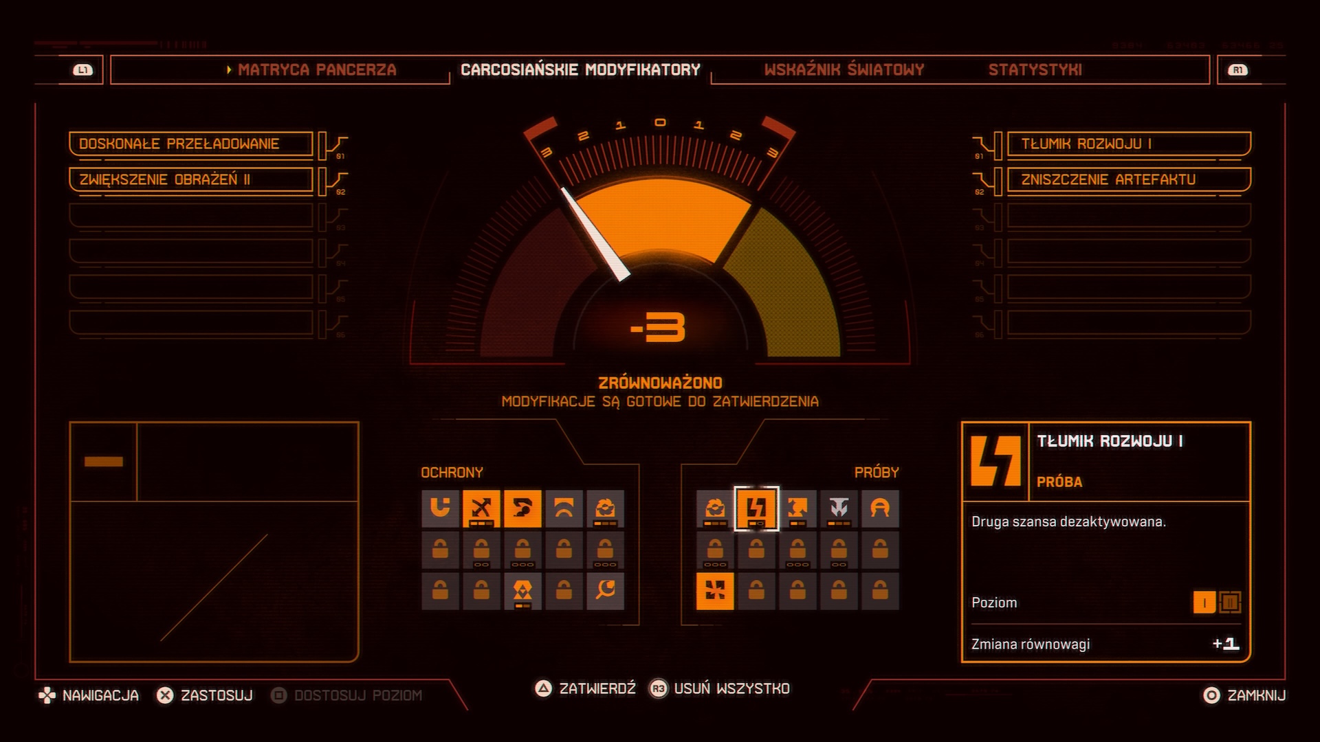 Wśród ułatwień znajdziemy przykładowo zwiększenie obszaru szybszego przeładowania, a także zniesienie ograniczeń tarczy Soltari. Utrudnić rozgrywkę możemy natomiast m.in. zmniejszeniem ilości pozyskiwanego lucenitu lub dezaktywacją systemu drugiej szansy po śmierci.