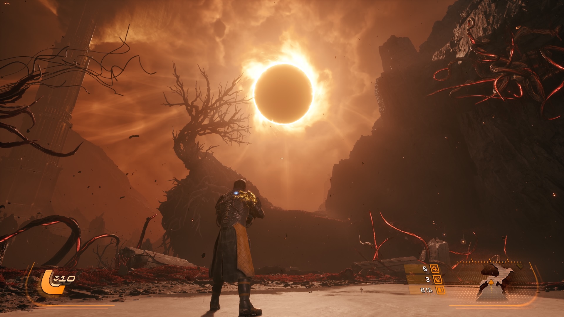 Carcosa sama w sobie nie pozostaje statyczna w toku naszej gry. Podczas wyprawy natkniemy się bowiem na tajemnicze ołtarze rąk, których aktywowanie inicjuje zaćmienie słońca. Do końca bieżącego podejścia świat skąpie się w mroku, a przeciwnicy zyskają na agresji i sile. Zaćmienie ma jednak swoje zalety – lucenit pozyskiwany z wrogów staje się bogatszy, więc odważni śmiałkowie zostaną sowicie wynagrodzeni za podjęcie tego wyzwania.
