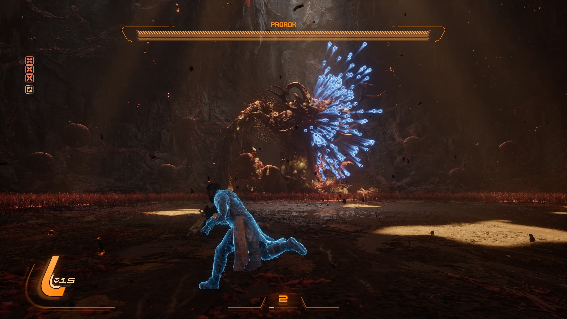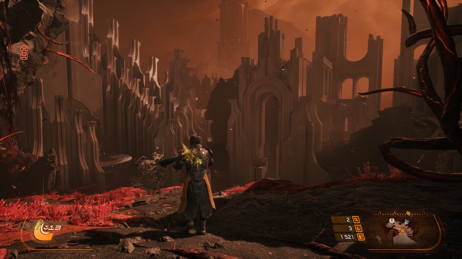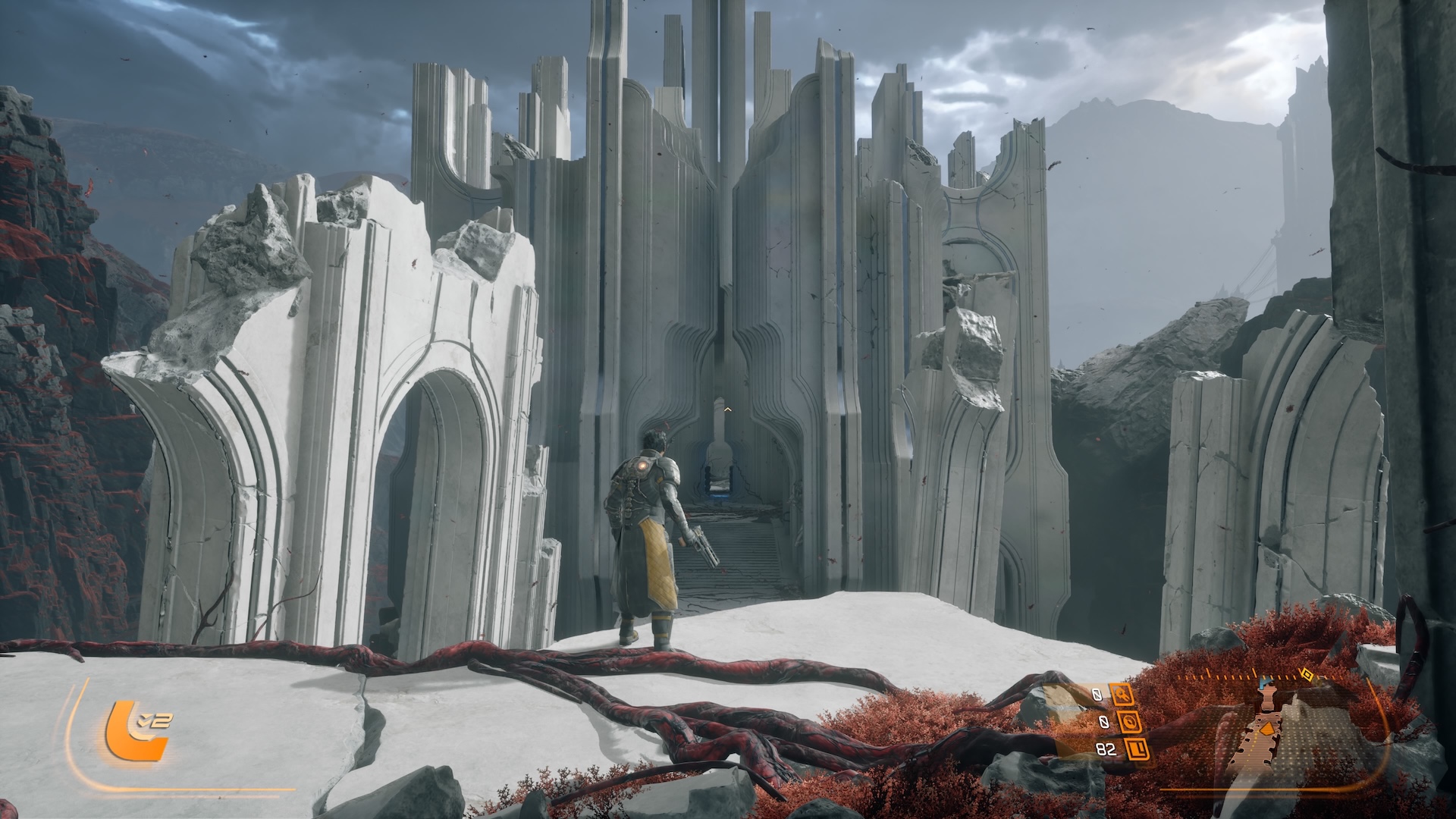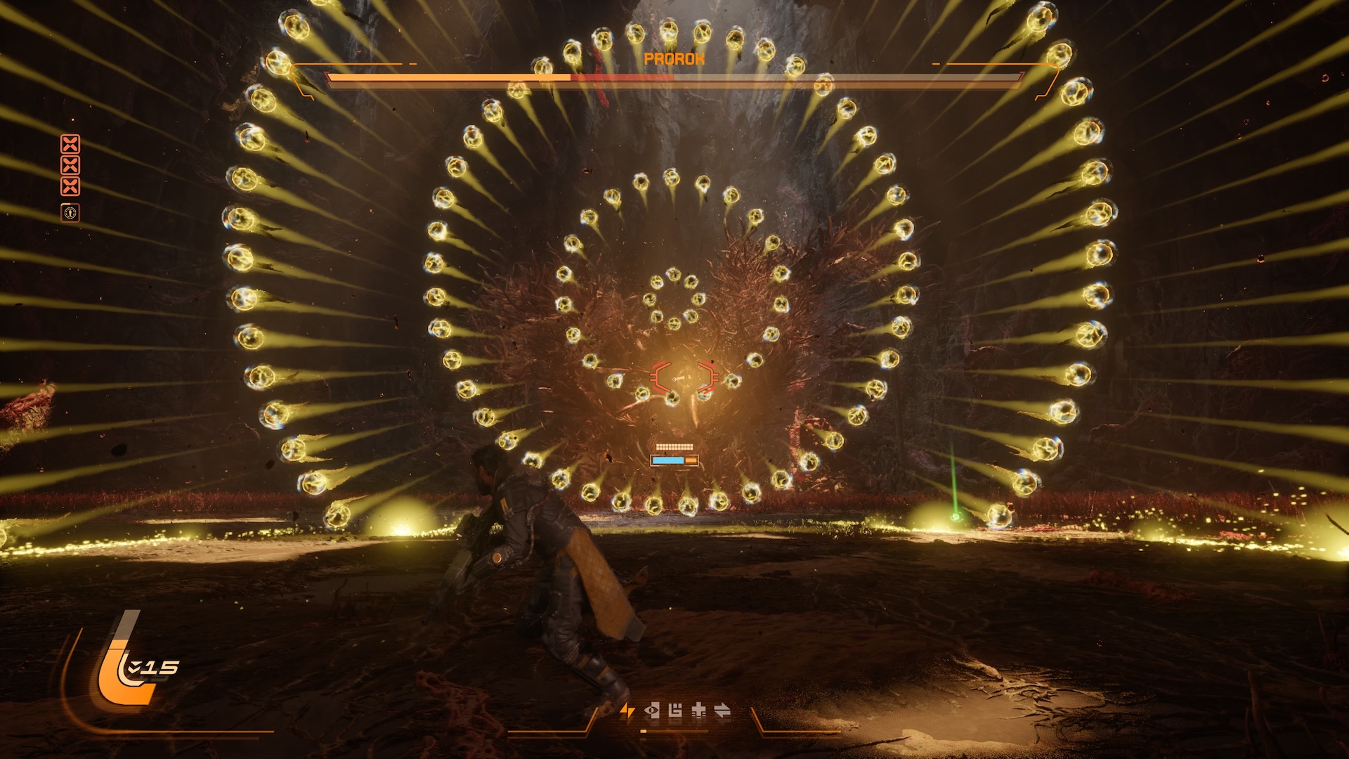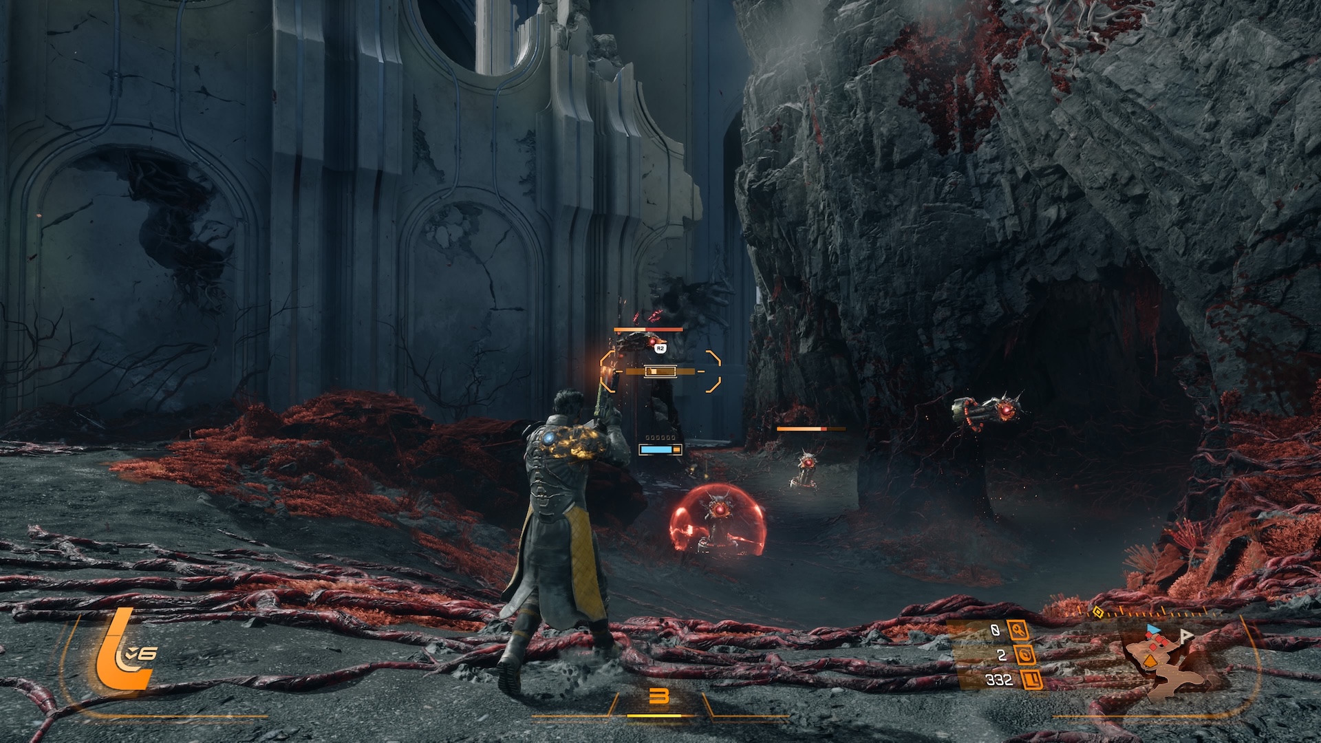 Nie da się odeprzeć wrażenia, iż Saros jest duchowym spadkobiercą Returnal. Cała pętla rozgrywki jest tu w zasadzie bliźniacza z poprzednią grą Housemarque. Również tutaj poziom trudności (mimo wielu potencjalnych ułatwień) może sprawić, iż zabawa będzie budziła w nas irytację. Już w trzecim z dostępnych światów spotkałem się ze sporym skokiem poziomu wyzwania, który w Returnal przychodził nieco później.
