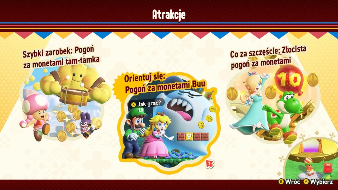 Znajdziemy tu mnóstwo kreatywnych wyzwań, jedne wymagają współpracy, inne opierają się na rywalizacji. Nintendo świetnie wykorzystuje znane mechaniki i buduje wokół nich świeże pomysły.
