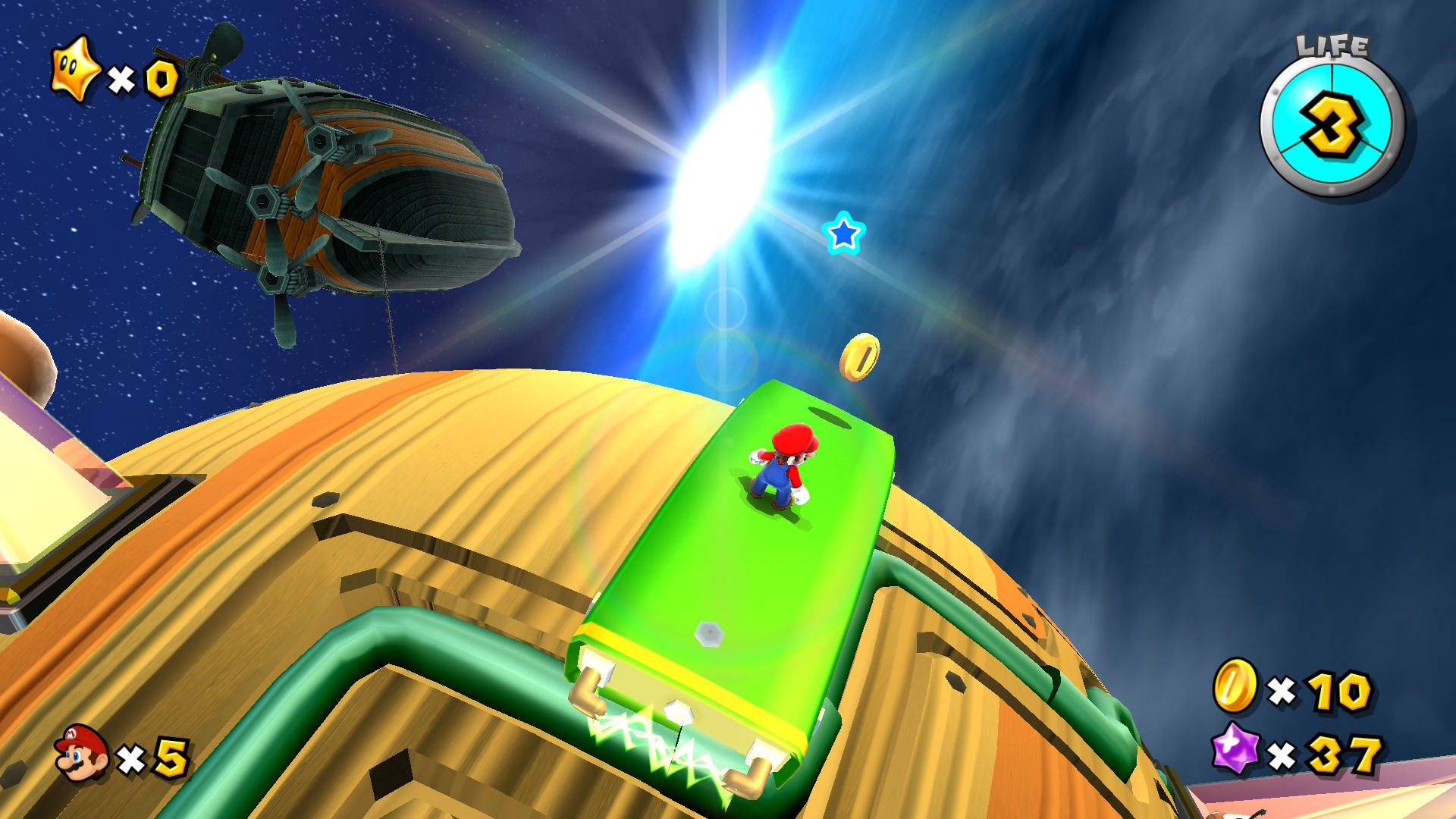 Kosmiczna otoczka dawała geniuszom z Nintendo okazję na wykazania się na niespotykaną wcześniej skalę. Grawitacja, czarne dziury, ciepłe planetarne wnętrza, skakanie między galaktykami – wszystko to kapitalnie przekładało się na rozgrywkę, opracowaną z myślą o ruchowym sterowaniu, wyróżniającym słabą obliczeniowo, ale niezwykle popularną konsolę Nintendo Wii.