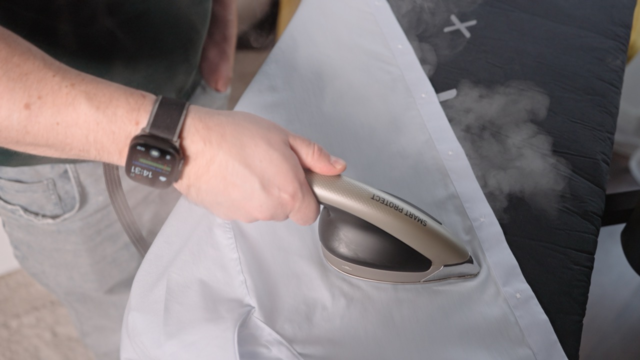 Tefal Ixeo Power to przy tym urządzenie dla osób, które nie chcą przy prasowaniu zastanawiać się za każdym razem, gdy biorą do ręki nowy ciuch ze sterty, jakich dokładnie ustawień powinni użyć. Nie trzeba tu kręcić precyzyjnym pokrętłem temperatury (bo ta dobierana jest automatycznie dzięki funkcji Smart Protect), co pozwala prasować dowolny materiał – od bawełny aż po jedwab.
