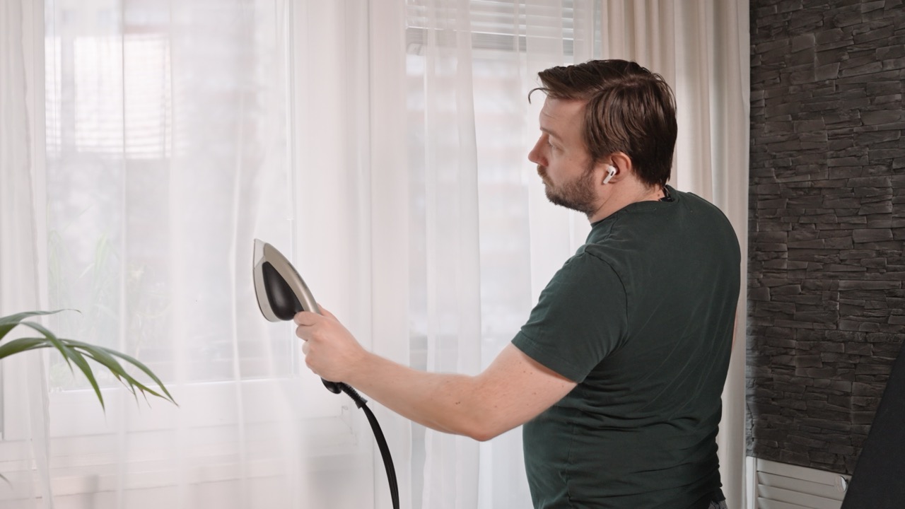 Do takiego klasycznego prasowania najlepszy jest oczywiście tryb poziomy, ale jeżeli nie mamy akurat miejsca, by rozłożyć deskę, możemy wykorzystać tryb pochyły. Ten jest w pełni wystarczający do szybkiego prasowania zarówno koszul, jak i t-shirtów. Nachylenie na poziomie 30 stopni sprawia, iż te nie zsuwają się z deski pokrytej gładkim materiałem.