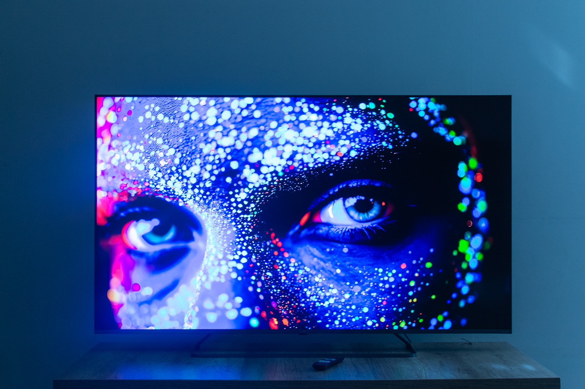 Matryca VA robi tu swoje. W ciemnym pomieszczeniu natywny kontrast jest wysoki, a czerń – jak na LCD – naprawdę przekonująca. MiniLED z lokalnym wygaszaniem dodatkowo podbija efekt, szczególnie w scenach z jasnymi obiektami na ciemnym tle: napisy, gwiazdy na nocnym niebie, reflektory w mroku. Blooming (poświata wokół jasnych obiektów) oczywiście występuje – to przez cały czas LCD, nie OLED – ale przy rozsądnych ustawieniach jest trzymany w ryzach i nie wybija z immersji.