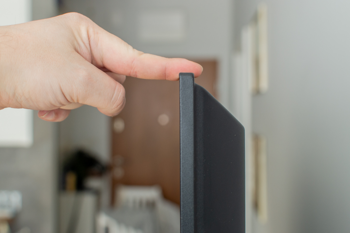 Sharp Aquos JP7000 (65JP7265E) – grubośćPodstawa to klasyczny, szeroko rozstawiony stojak. Dla części osób będzie to minus, bo wymusza szeroką szafkę RTV; z drugiej strony telewizor stoi stabilnie i nie buja się przy każdym dotknięciu. jeżeli planujesz wieszać go na ścianie to standard VESA i sensowna waga jak na 65 cali nie powinny sprawić problemu.
