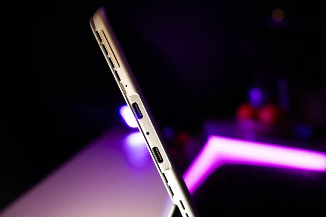 Rozmieszczenie portów w urządzeniu 2 w 1 zawsze jest kompromisem, ale tutaj Ninkear poradził sobie całkiem nieźle, ale z jednym, bolesnym wyjątkiem. Na lewej krawędzi znajdziemy podwójny przycisk regulacji głośności oraz dwa w pełni funkcjonalne porty USB-C 3.1. Obsługują one ładowanie, transfer danych oraz przesyłanie obrazu. Po prawej stronie ostał się jeden klasyczny port USB-A 3.0, co jest zbawieniem, jeżeli przez cały czas korzystamy ze starszych pendrive’ów czy myszek bez konieczności zabawy w przejściówki.