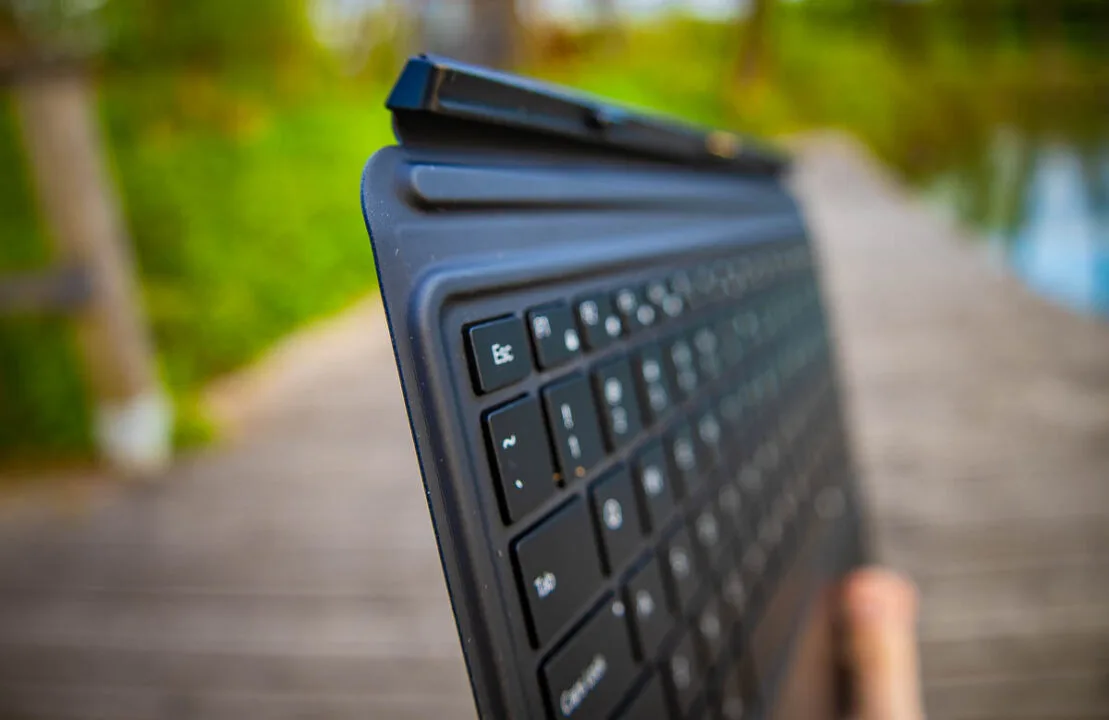 Dostarczana w zestawie dzielona klawiatura magnetyczna łączy się ze sprzętem błyskawicznie i bezbłędnie. Zastosowano tu czujniki Halla, więc po podpięciu lub zamknięciu klawiatury system automatycznie dostosowuje swój tryb działania. Klawisze mają krótki, ale wyczuwalny skok, a ich półprzezroczysta natura w połączeniu z jednostopniowym podświetleniem sprawdza się wybornie w nocy. Znalazło się tu choćby miejsce na dedykowany klawisz asystenta Copilot.