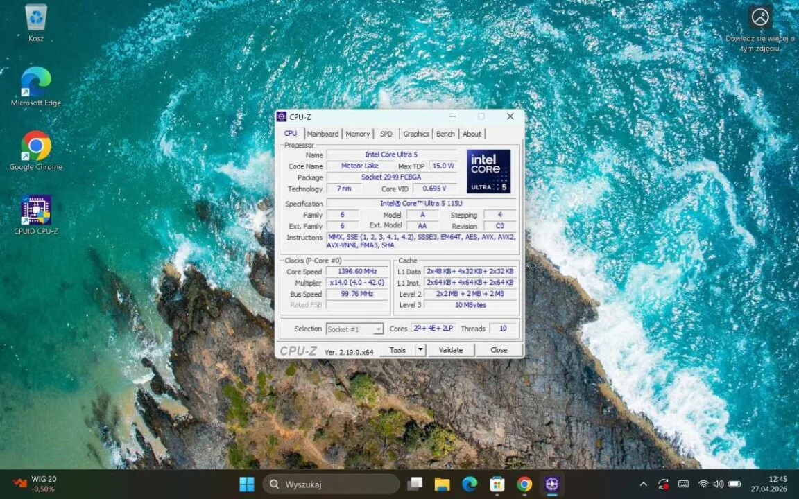 | Procesor: | Intel® Core Ultra 5 115U, 8 rdzeni (2LPE4E2P), 10 wątków |