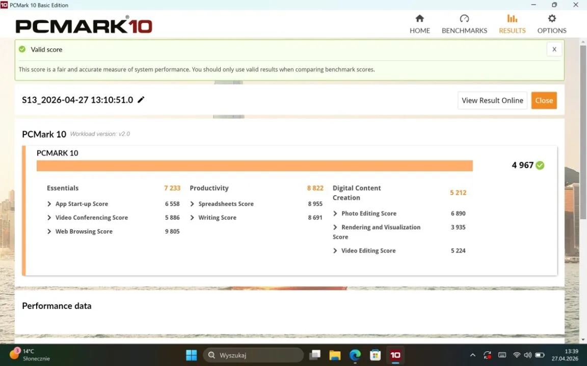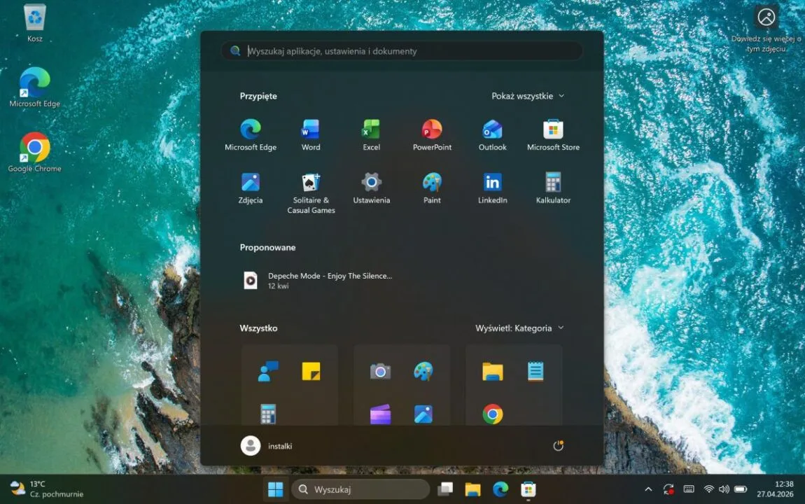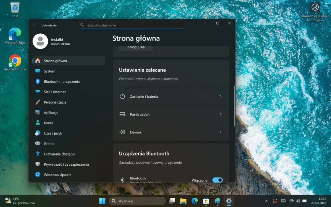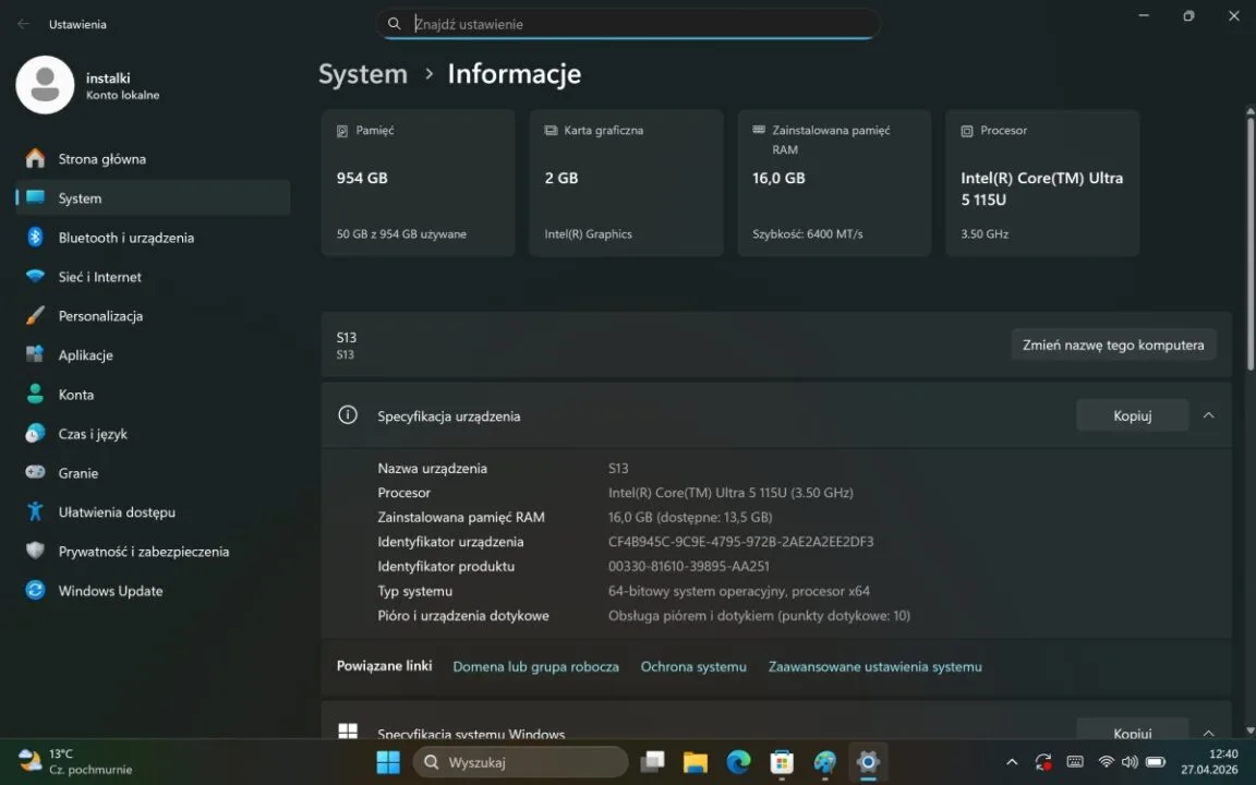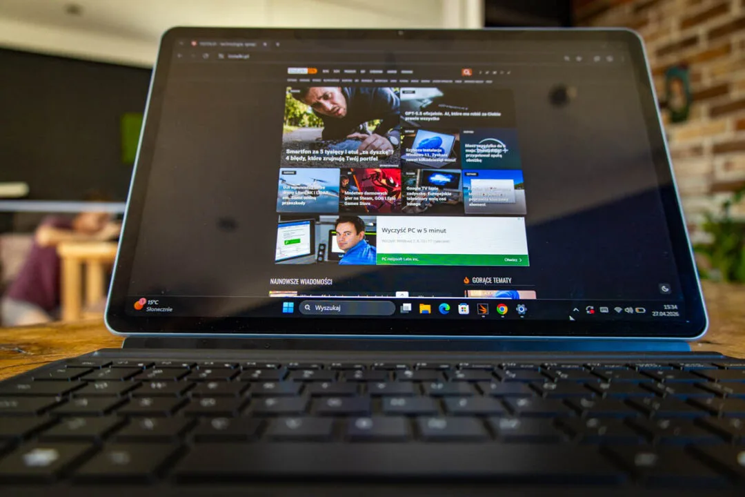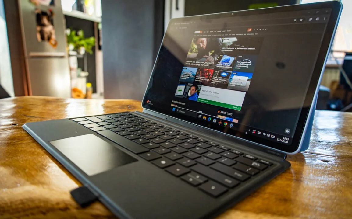 Istotne jest wyłącznie to, iż mówimy o pełnoprawnym, desktopowym systemie, a nie okrojonej wersji mobilnej znanej z klasycznych tabletów. Otrzymujemy więc standardowe, uniwersalne środowisko pracy, które w połączeniu z układem Intel Core Ultra po prostu robi to, co do niego należy. Działa płynnie, stabilnie i zapewnia pełną kompatybilność z każdym oprogramowaniem biurowym, którego akurat potrzebujemy. Żadnych niespodzianek, żadnego uczenia się interfejsu na nowo. Ot, klasyczne okienka, które w tym formacie sprawdzają się bez zarzutu.