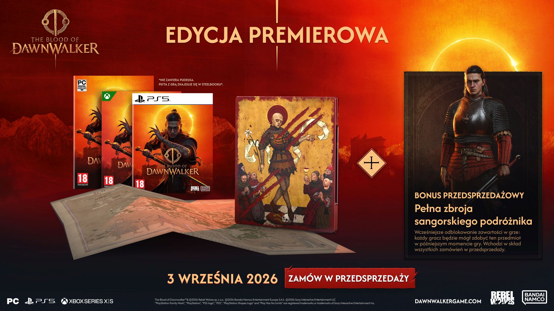 W tym wydaniu (Edycja Premierowa) znajdziemy specjalny steelbook, w którym umieszczona będzie płyta z grą. Dostaniemy również drukowaną mapę świata The Blood of Dawnwalker oraz oczywiście wspomniany już wcześniej bonus przedsprzedażowy. Wydanie to będzie dostępne na PC, PS5 oraz Xbox Series X.