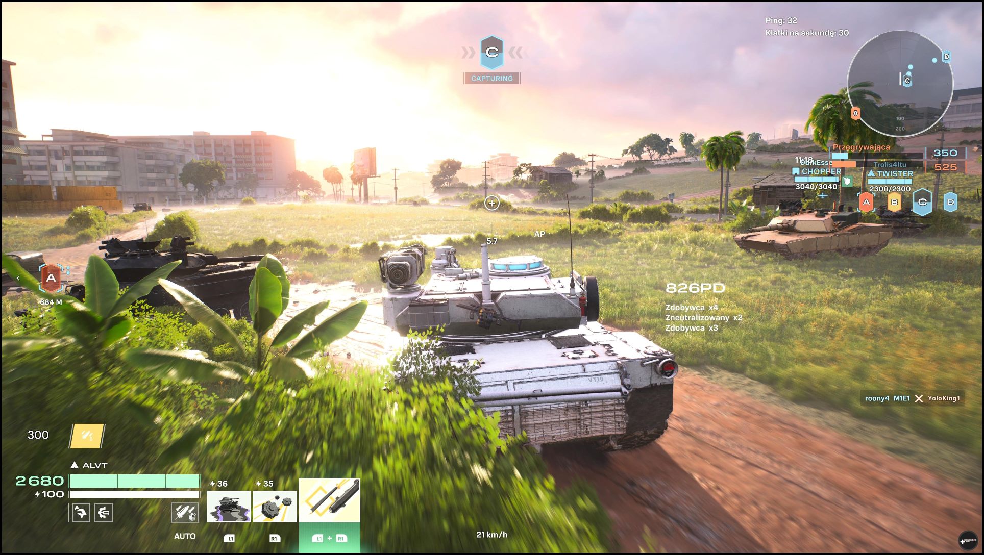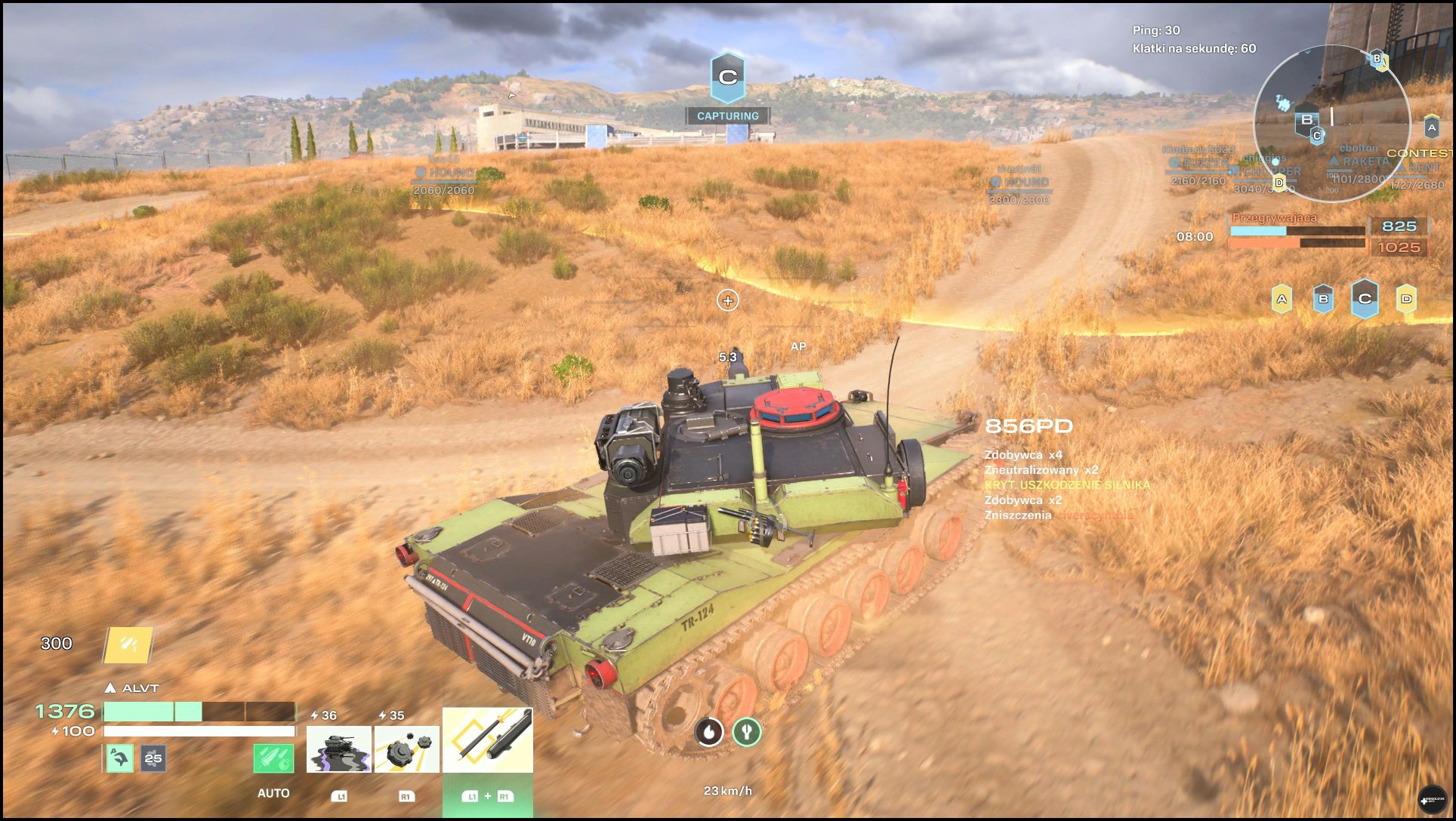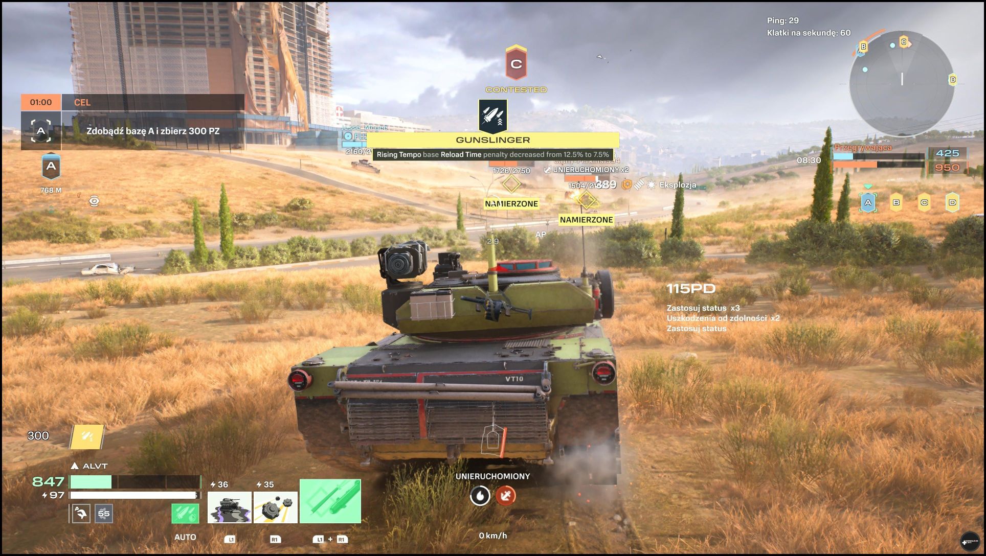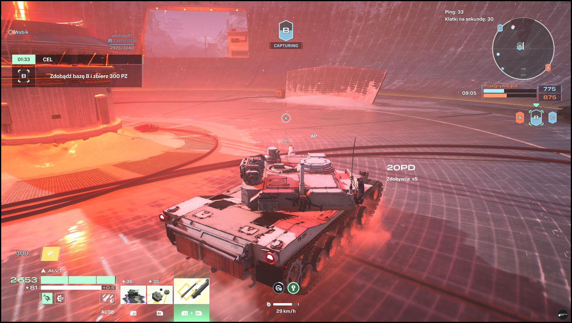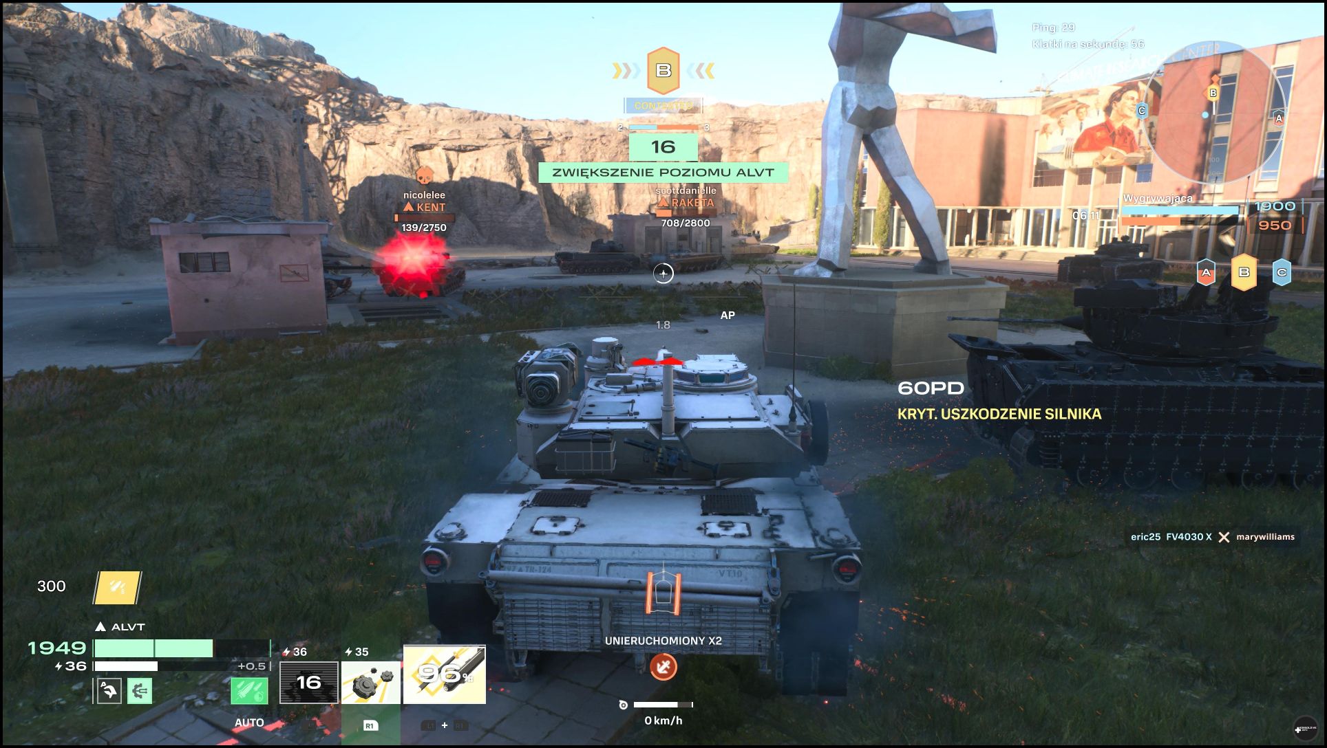 Inny z nich polega na kontrolowaniu określonych stref. Tryb ten ma dwie pochodne. W jednej z nich wygrywa drużyna, która zwyciężyła w 2 z 3 rund. W drugim natomiast mamy po prostu jedną dłuższą rundę i musimy gromadzić punkty przyznawane między innymi za kontrolowanie stref, ale też za uszkadzanie i likwidowanie przeciwników. Nie doświadczyłem trybu wszyscy na wszystkich i za każdym razem sukces albo porażka należały do całej drużyny. Oczywiście im lepiej radzimy sobie w boju, tym więcej dostajemy punktów doświadczenia. Oznacza to, iż automatycznie tym szybciej wbijamy kolejne poziomy zarówno czołgu, jak i agenta. Więcej napiszę o tym w następnej części dzisiejszego artykułu.