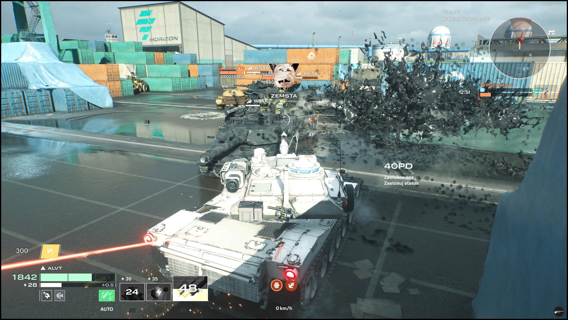 Nie mogę nie wspomnieć o kwestiach wizualnych. World of Tanks: HEAT potrafi wyglądać dość ładnie, aczkolwiek mam wrażenie, iż nastąpiło pogorszenie jakości grafiki względem wersji, w którą grałem – również na PlayStation 5 – na Gamescomie. Nie znaczy to absolutnie, iż HEAT jest według mnie brzydkie. Odstaje jednak od wielu gier sieciowych wiodących prym na rynku. Mam nadzieję, iż jeszcze się to zmieni w ciągu nadchodzących miesięcy. Doceniam możliwość wybrania trybu jakości lub wydajności. Pierwszy z nich zapewnia 30 klatek na sekundę, a drugi 60 klatek. Jakość w moim przekonaniu nie prezentuje się dużo lepiej od wydajności, wobec czego bez żalu korzystałem z wydajności. Można też dostosować wiele opcji, zarówno w przypadku punktów wychylania gałek pada, jak i położenia kamery – każdy znajdzie bez wątpienia coś dla siebie. Niżej możecie obejrzeć moje nagranie rozgrywki na bazowej wersji konsoli PlayStation 5: