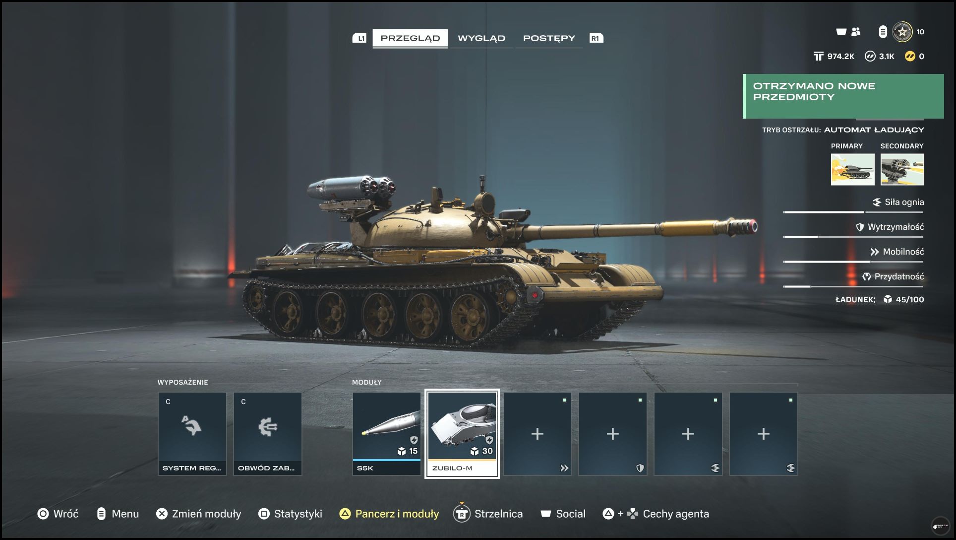 Czołgi, ulepszenia i agent