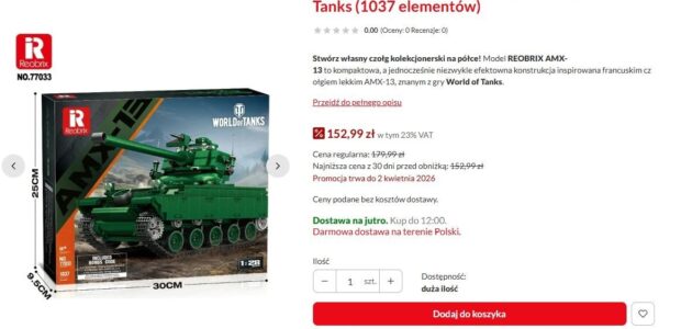 Zestawy od firmy Alexander można kupić za około 140 PLN zaś klockowe czołgi od Reobrix kosztują 179,99 PLN za polskiego ciężara oraz 152,99 PLN za pozostałe modele.